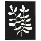 Cette œuvre graphique saisissante célèbre la beauté naturelle avec un contraste audacieux. Les formes végétales blanc crème se détachent magnifiquement sur le fond noir profond, créant un effet visuel à la fois épuré et dramatique.