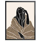Cette œuvre saisissante capture l'émotion humaine avec profondeur et délicatesse. La silhouette féminine stylisée en noir contraste magnifiquement avec les motifs organiques beiges, créant une composition visuellement riche qui évoque introspection et vulnérabilité.