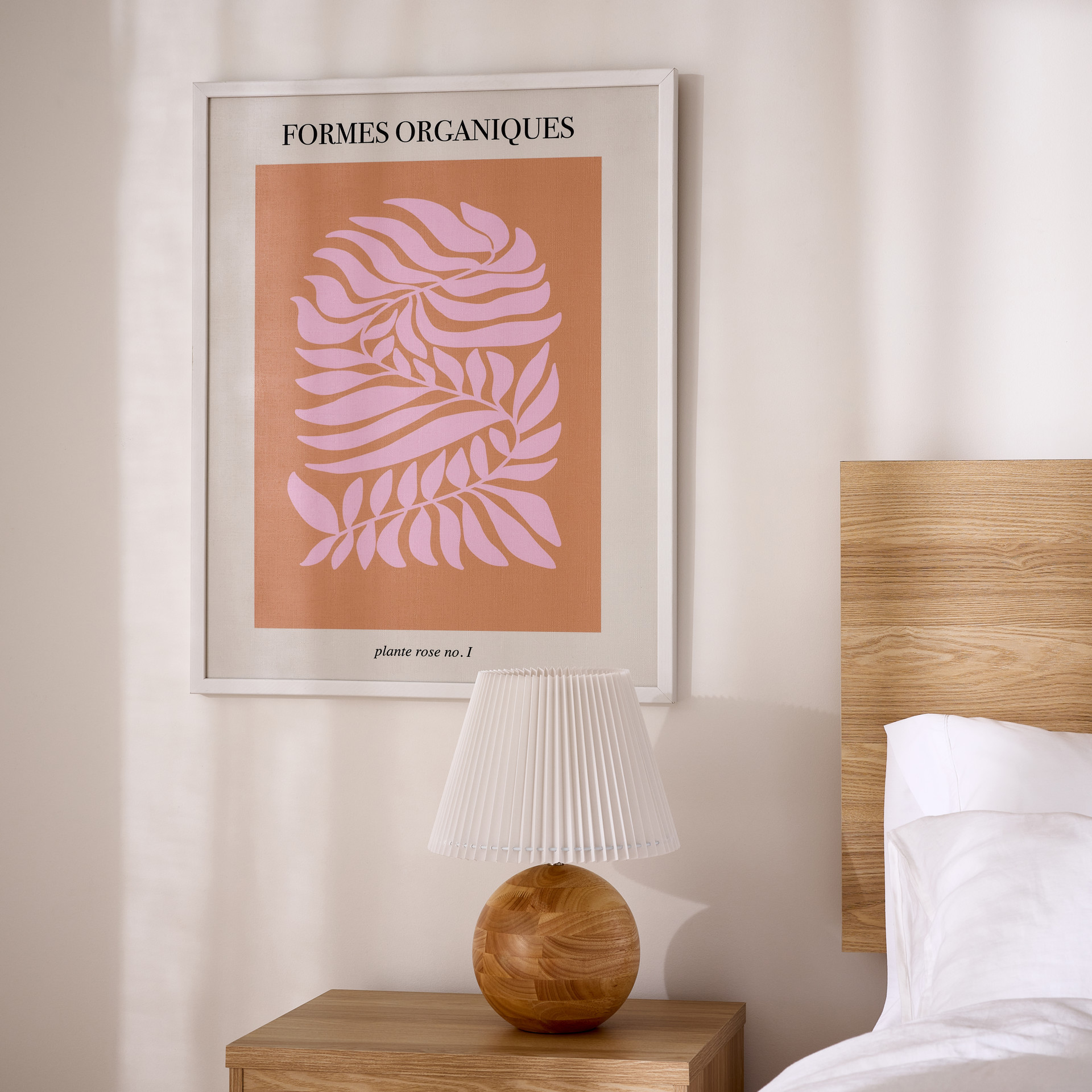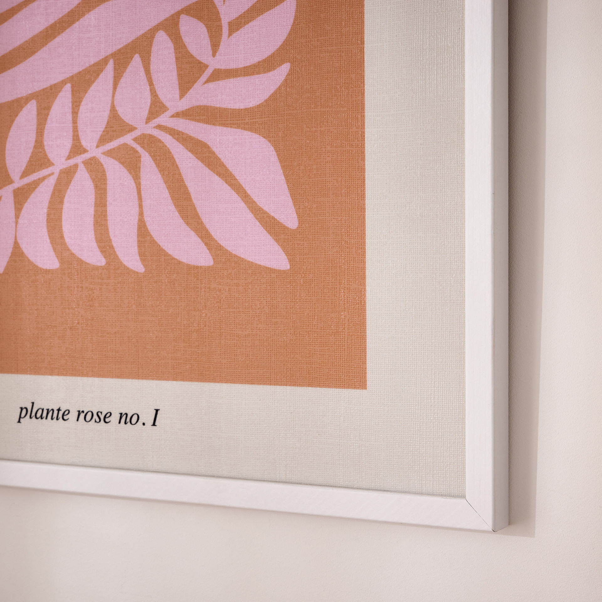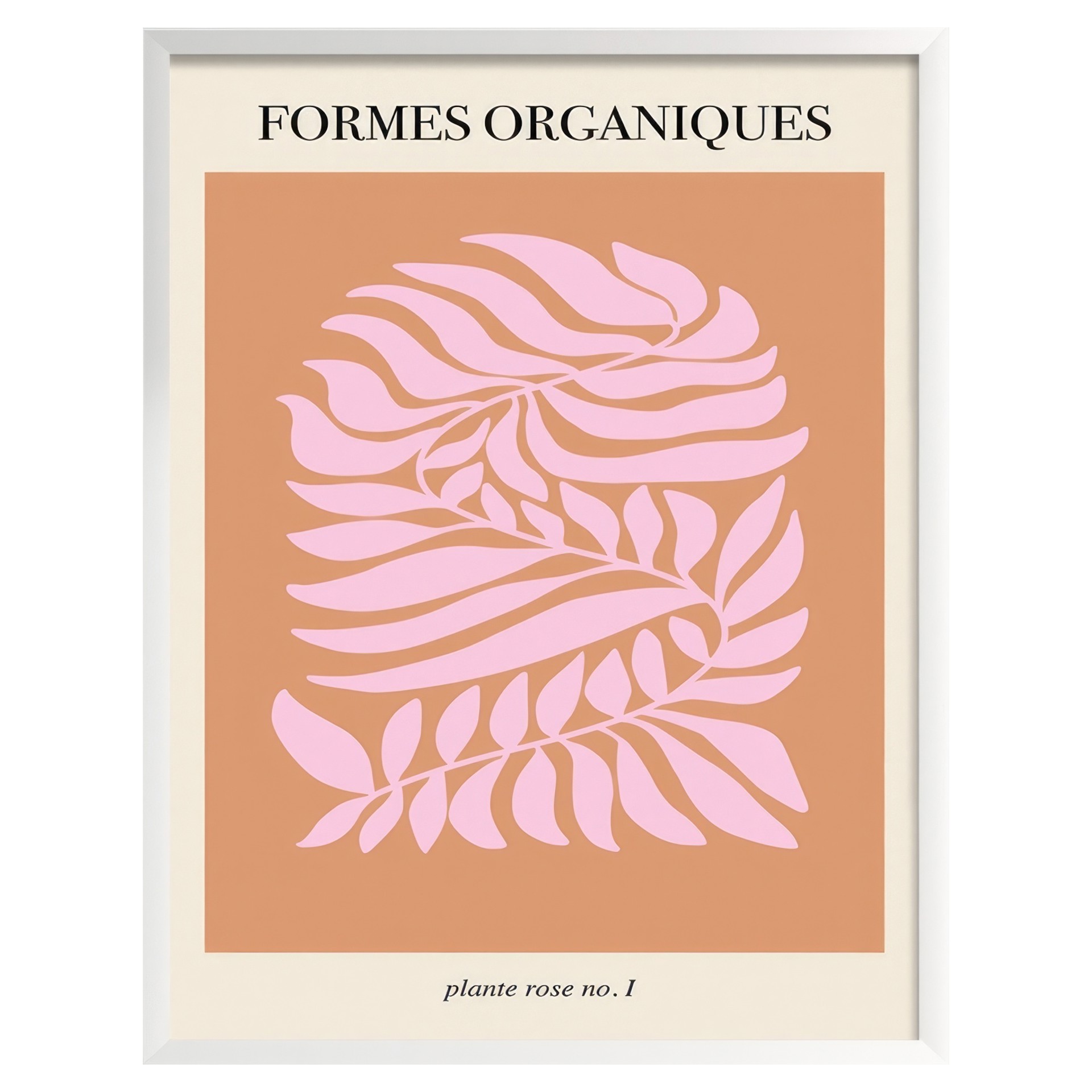 Apportez une note fraîche et contemporaine à votre décor avec ce tableau aux formes végétales stylisées. Ses couleurs vibrantes, combinant un rose doux et un fond chaleureux, créent une présence lumineuse dans n’importe quelle pièce.