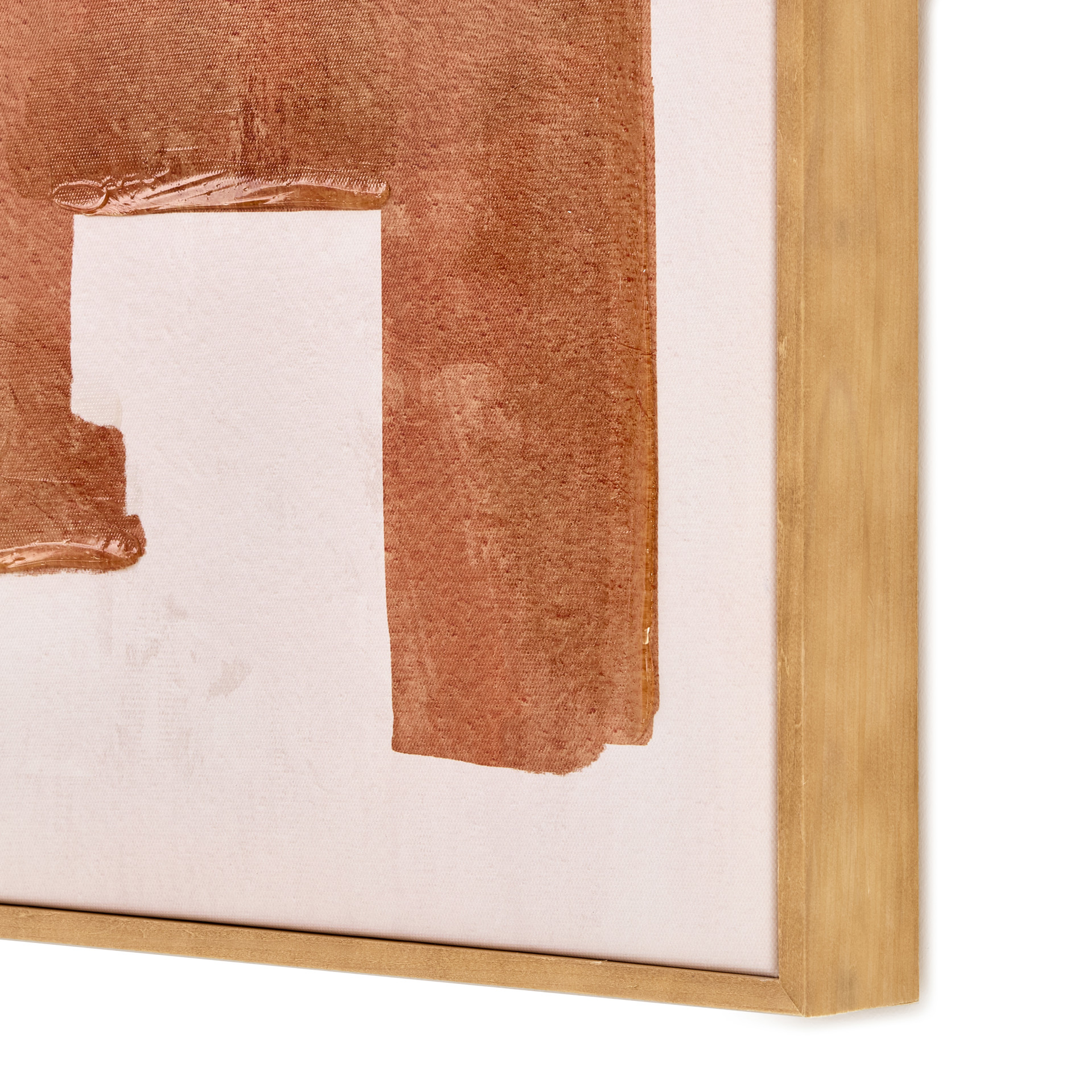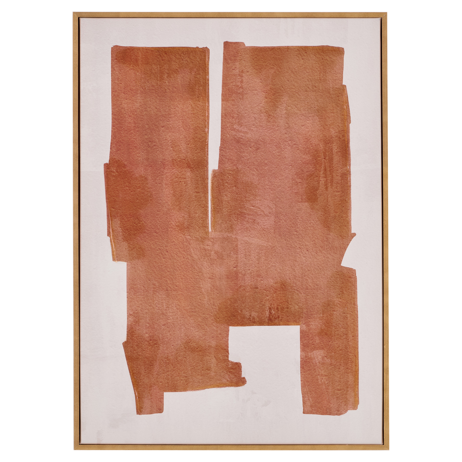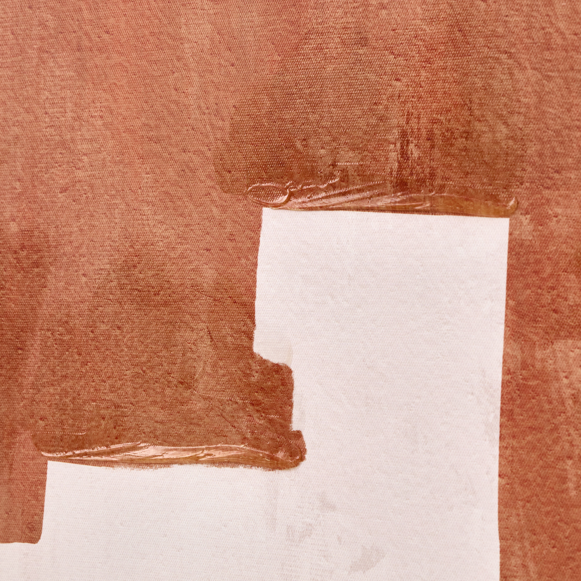 Ce tableau met en valeur une composition audacieuse aux teintes terre cuite chaleureuses. Ses formes d’apparence brute créent une présence visuelle forte tout en demeurant épurées.
