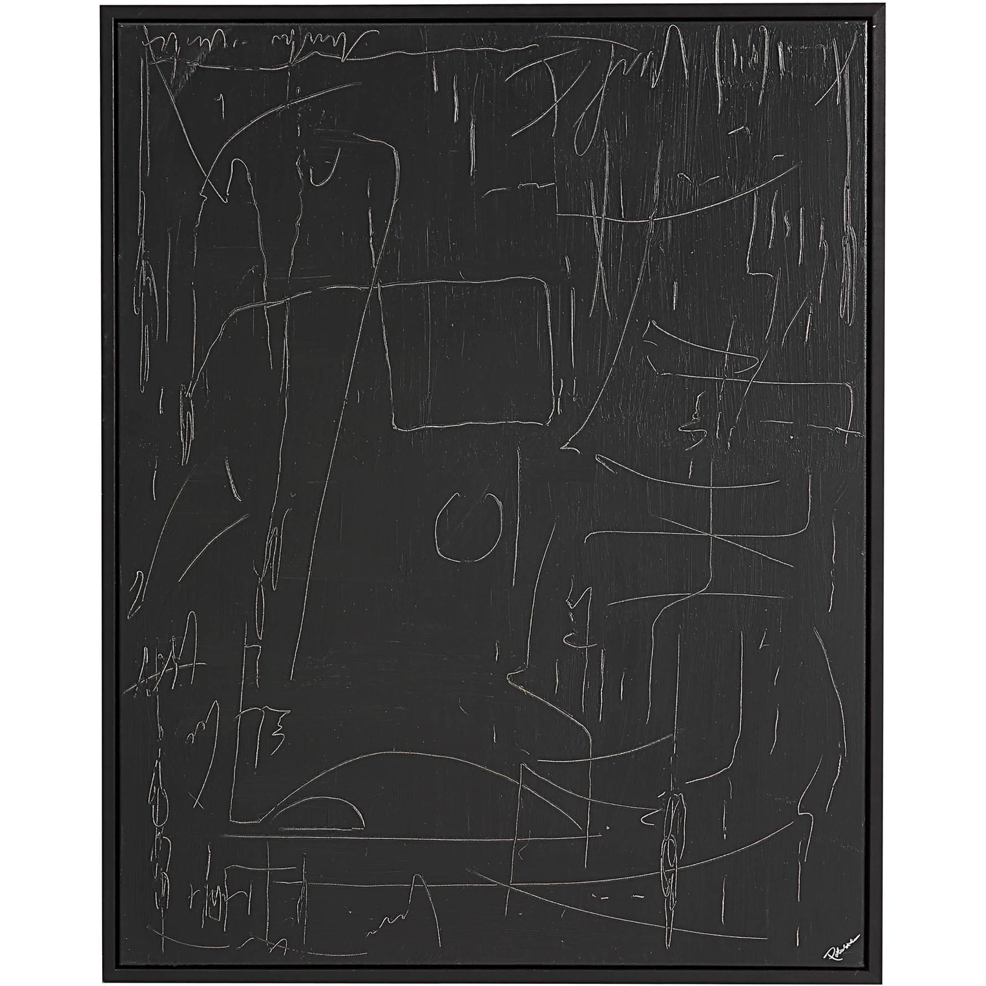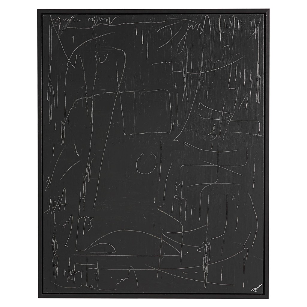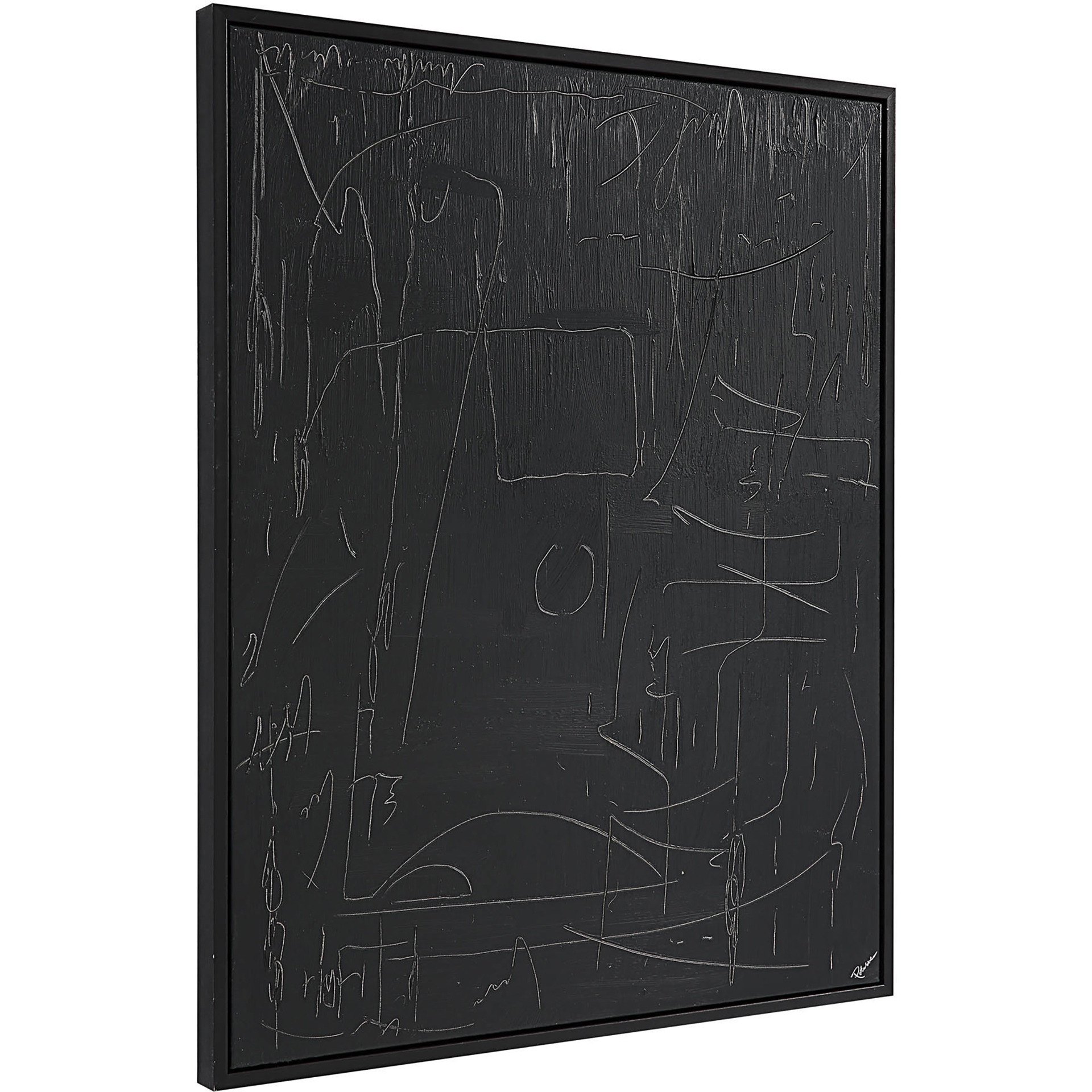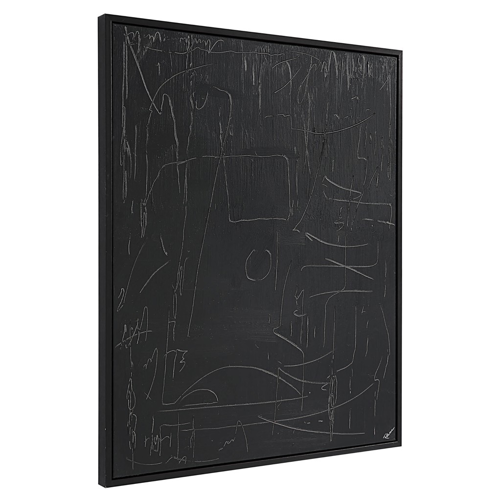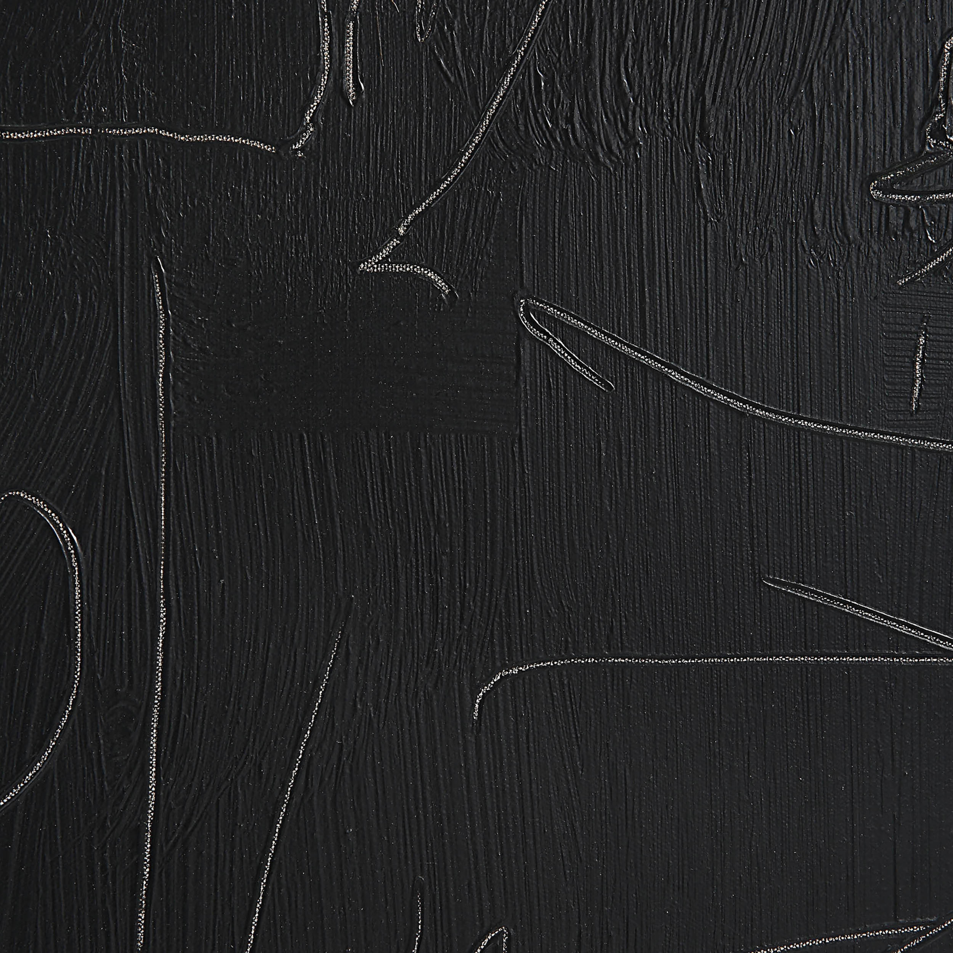 Ce tableau audacieux se distingue par sa surface noire texturée, traversée de lignes gravées qui créent un jeu subtil de formes et de profondeur. Son caractère minimaliste et moderne apporte une présence visuelle forte sans surcharger l’espace.
