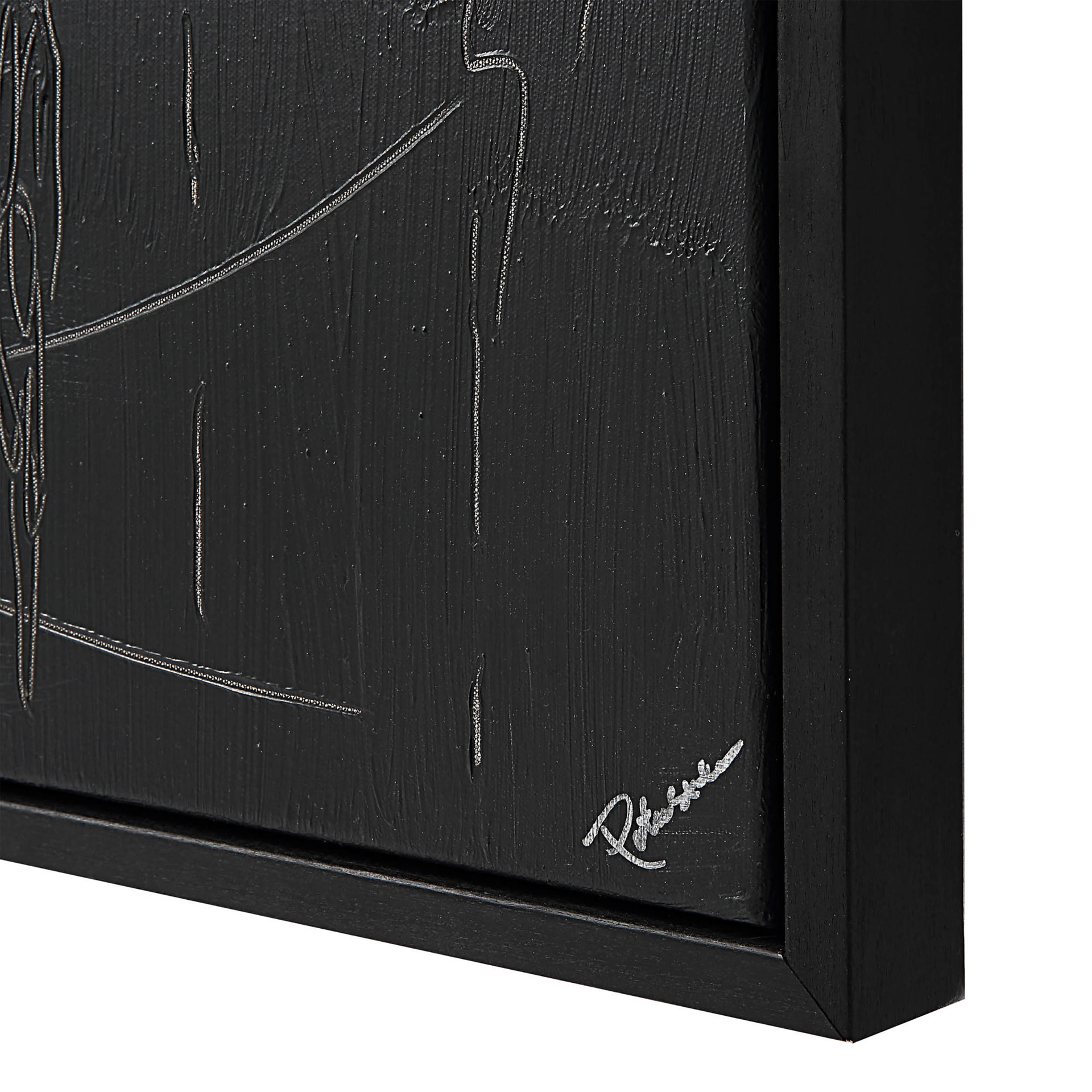 Encadrée d’une bordure noire discrète, cette pièce s’intègre parfaitement à un décor contemporain, ajoutant une touche artistique mystérieuse et sophistiquée au salon, au bureau ou à l’entrée.