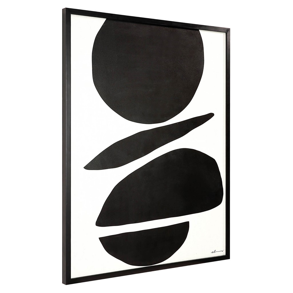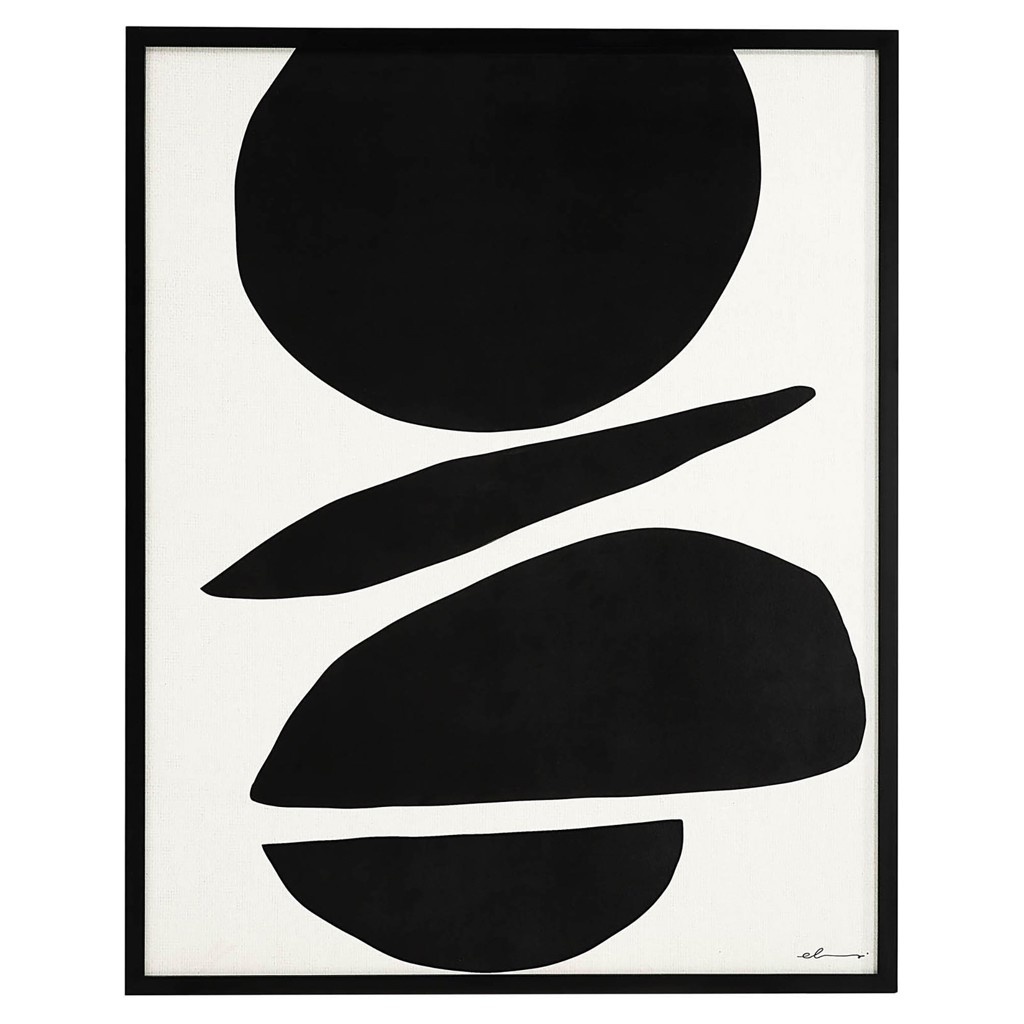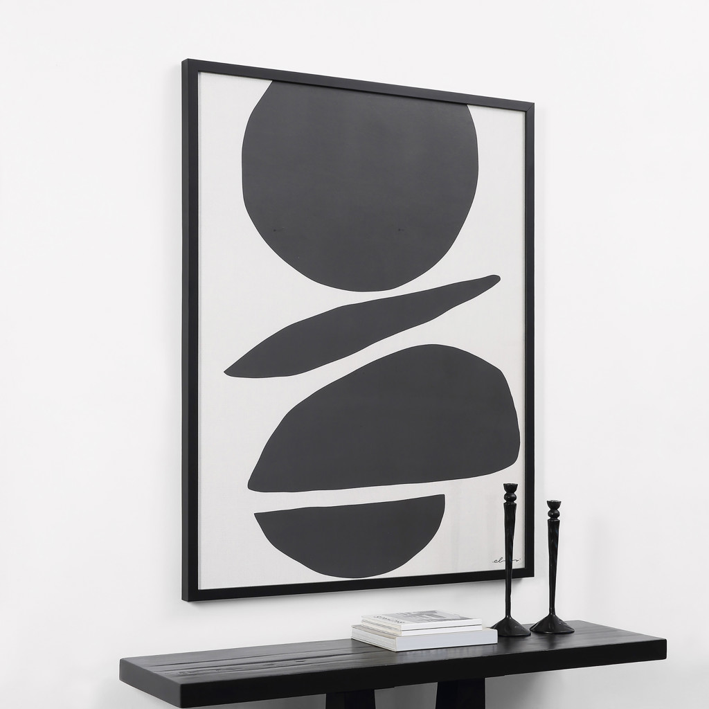 Ludique mais équilibrée, cette grande impression sur toile encadrée a une qualité intemporelle qui rehausse l'intérieur de la maison contemporaine.