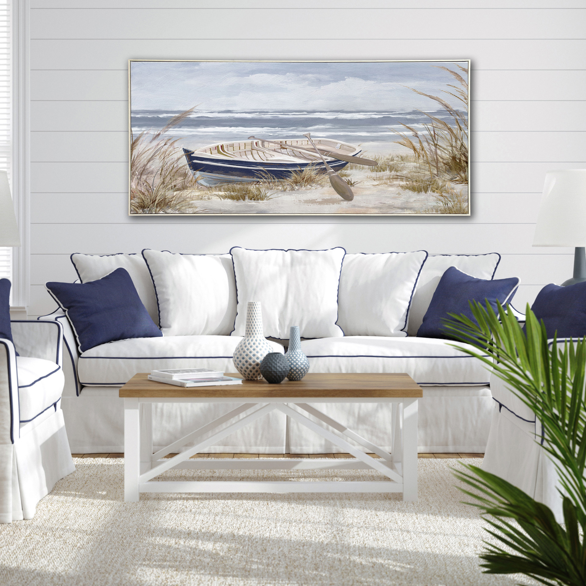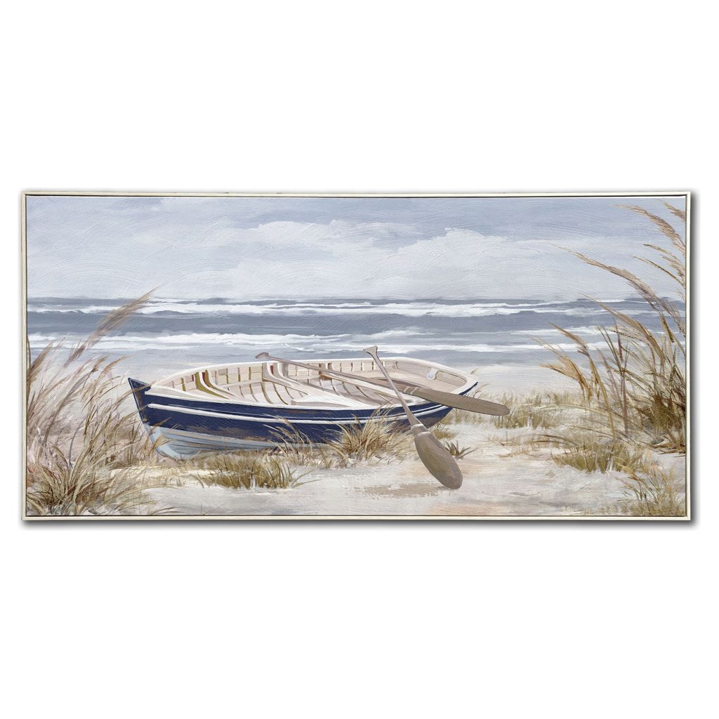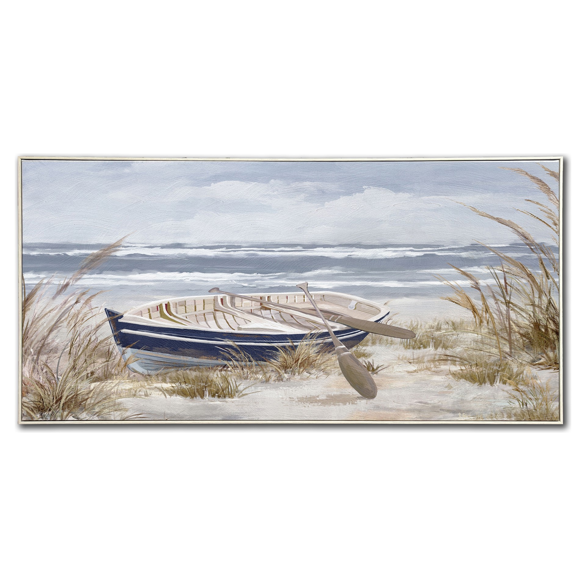 Ce tableau dégage une douce ambiance côtière grâce à sa barque déposée sur le sable et son horizon paisible. Les tons clairs et naturels évoquent le calme d’une journée en bord de mer, apportant une sensation d’évasion à votre espace.