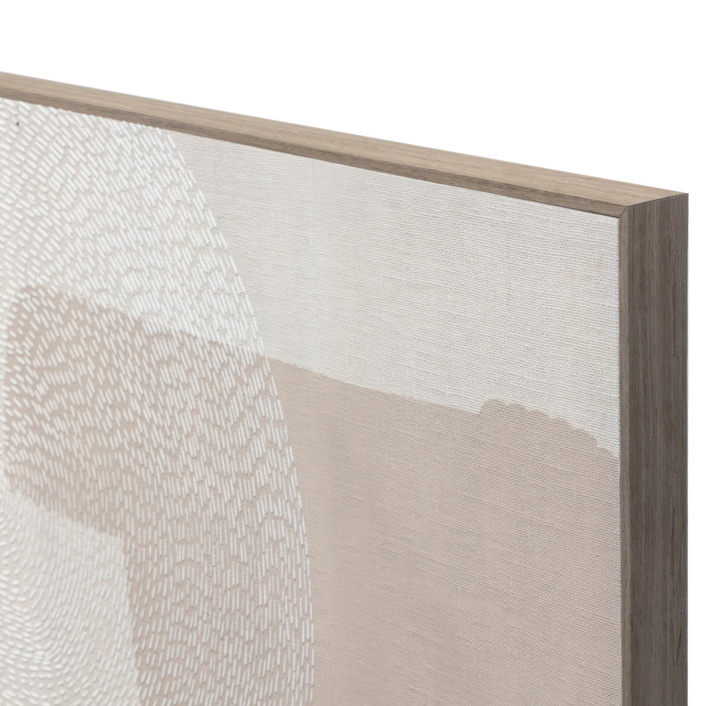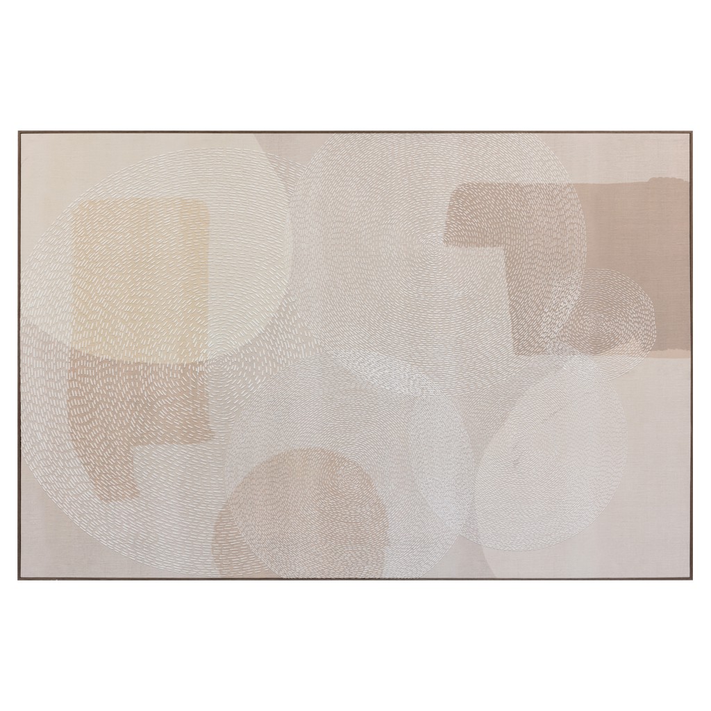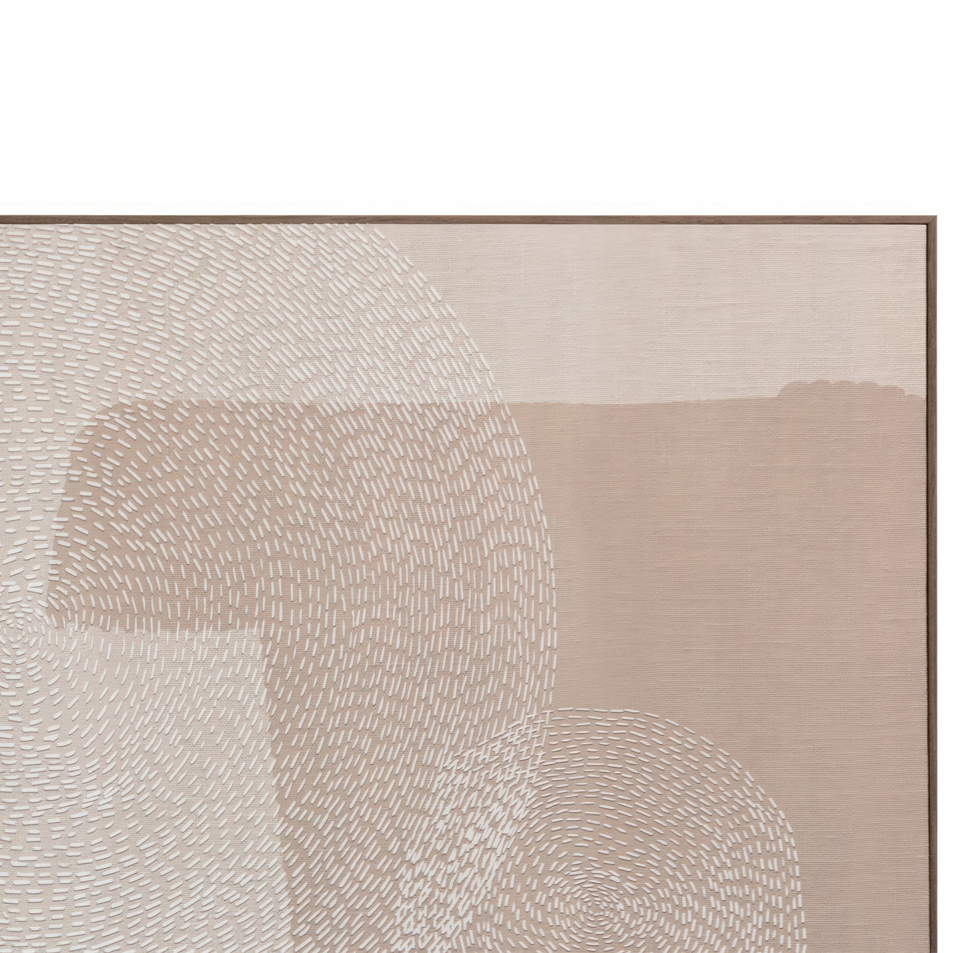 Ce tableau présente une composition apaisante, faite de cercles superposés aux teintes naturelles et délicates. Les motifs finement texturés créent une impression de mouvement subtil tout en conservant une grande douceur visuelle.