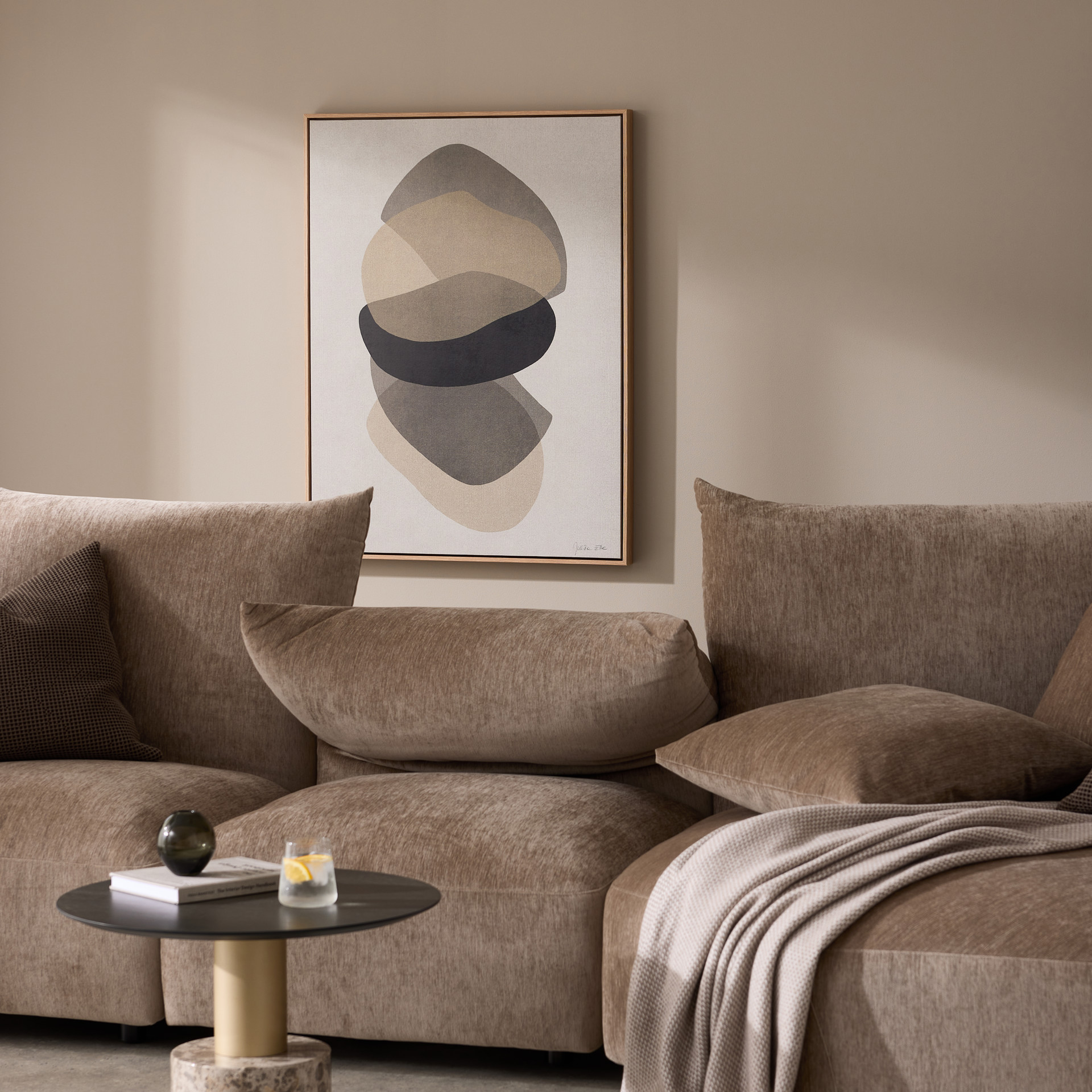 Apportez une touche naturelle et apaisante à votre décor avec cette œuvre aux formes organiques et aux teintes terre chaleureuses. Les superpositions délicates créent une composition harmonieuse qui s’intègre facilement dans les espaces modernes ou épurés.