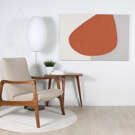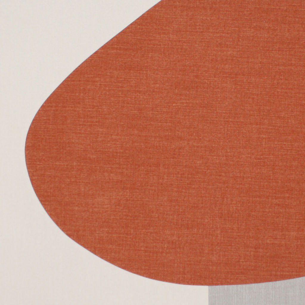 Le tableau AMBIANCE est une bulle orange sur fond neutre. Le dessin est composé de formes en tissu taillées, cousues et assemblées à la main.