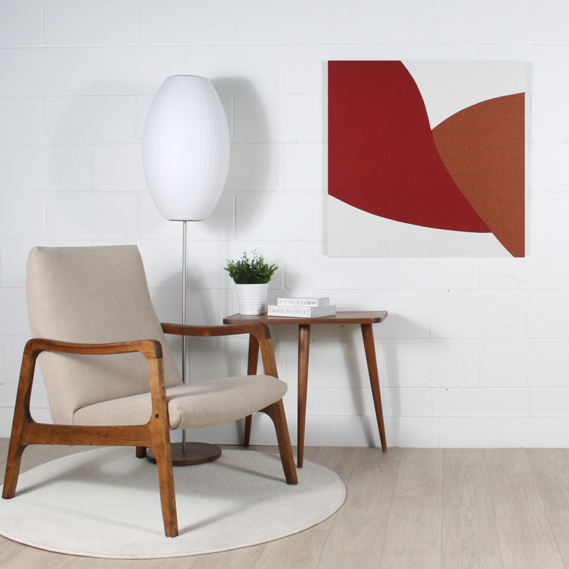 Chaque tableau est fabriqué sur demande en atelier à Québec et signé par l'artiste. Le tissu utilisé pour ce tableau est le BILLY, doux et texturé.