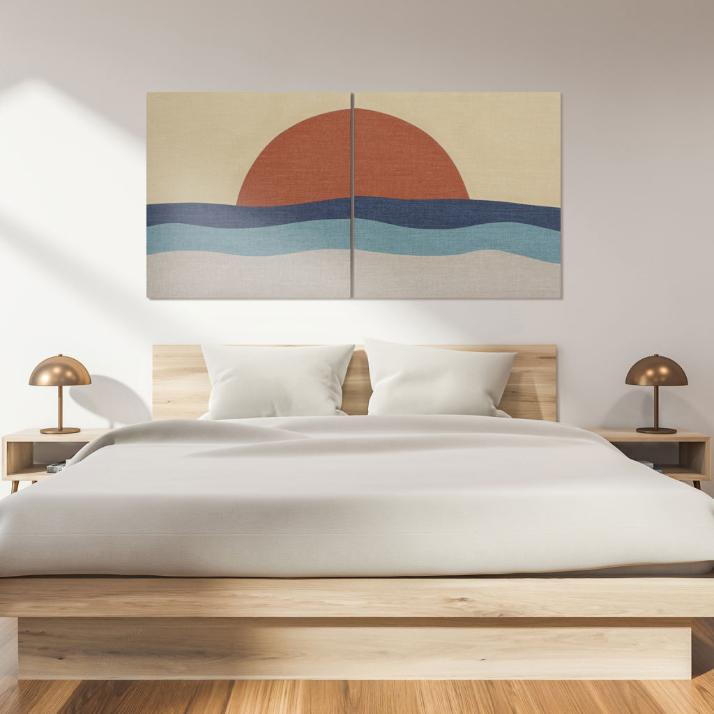 Le tissu utilisé pour ce tableau est le SIMON, une texture douce et chinée. La murale est composée de 2 tableaux de format 30 x 30 po, pour un total d'environ 61 x 30 po, car vous laisserez un espace minimum de 1 po entre chaque tableau.