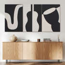 La murale SWING est une composition de 3 tableaux représentant des instruments de musique. Le dessin est composé de formes en tissu taillées, cousues et assemblées à la main. Chaque tableau est fabriqué sur demande en atelier à Québec et signé par l'artiste.