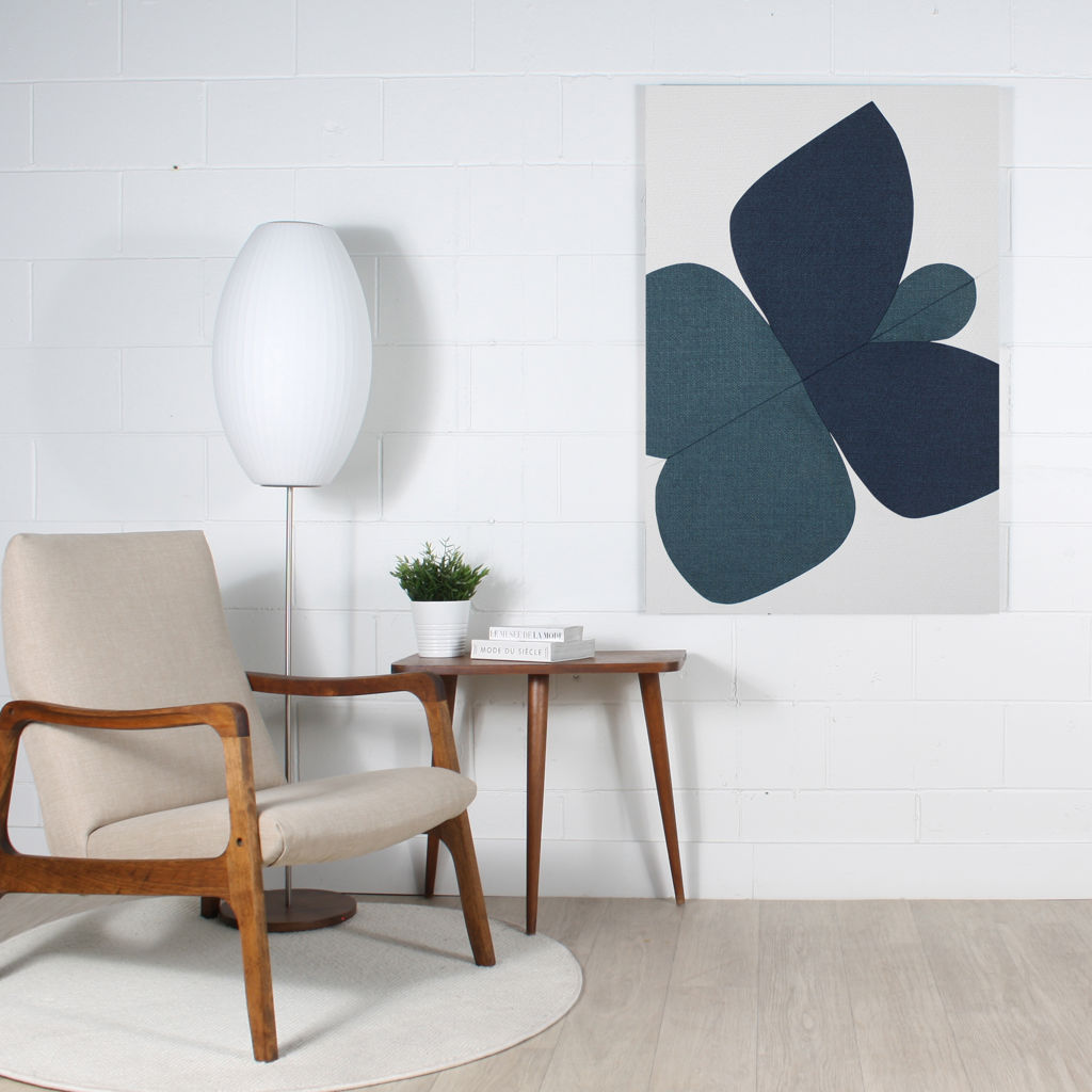 Chaque tableau est fabriqué sur demande en atelier à Québec et signé par l'artiste. Le tissu utilisé pour ce tableau est BILLY, doux et texturé. Il est disponible en format 24 x 36 po ou 30 x 45 po.