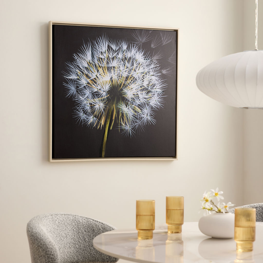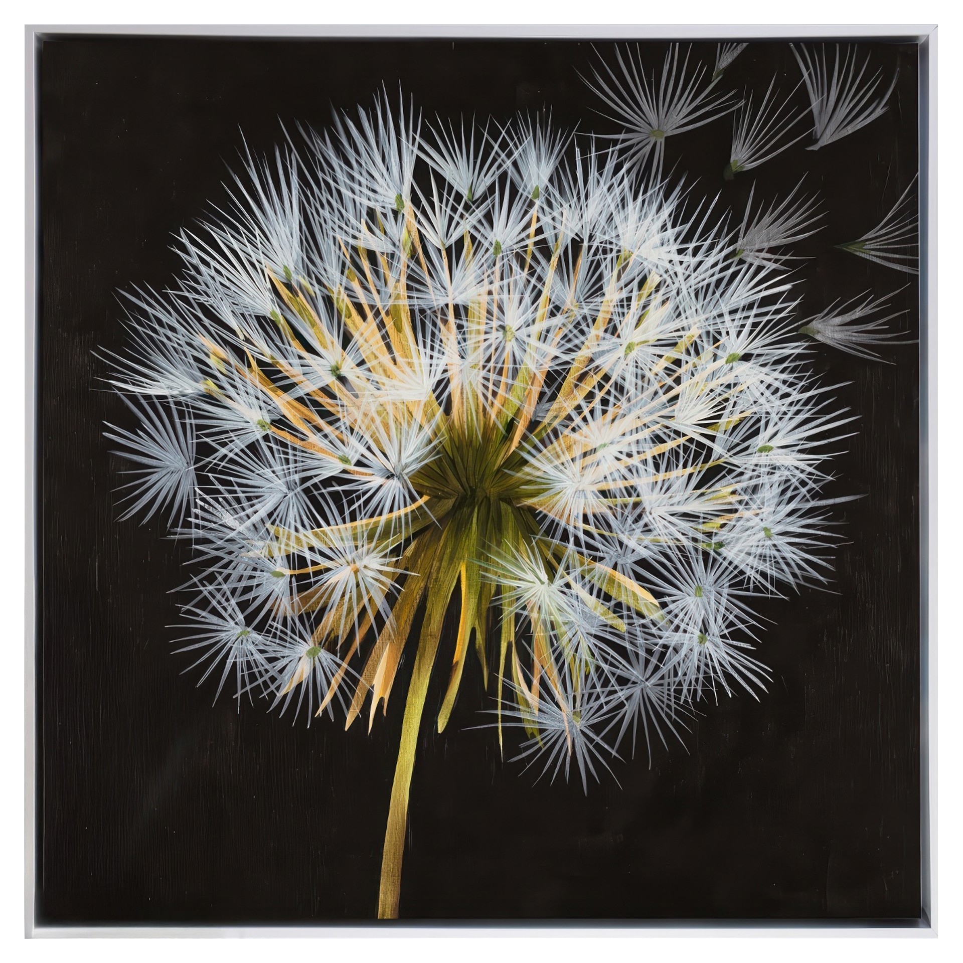 Cette image saisissante d'une tête de graine de pissenlit, avec ses détails complexes et sa structure délicate, en fait une pièce sophistiquée et moderne, parfaite pour ajouter un élément d'élégance inspiré de la nature à un salon ou un couloir.