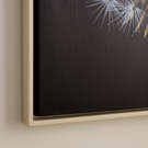 Toile décorative décorée à la main dans un cadre flottant blanc.