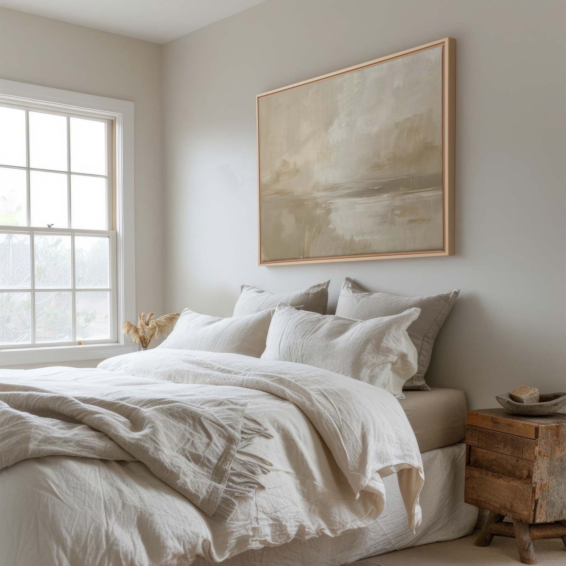 Les coups de pinceau subtils et délicats évoquent un paysage flou et éthéré, parfait pour apporter une touche de calme et de sophistication à n'importe quel espace.