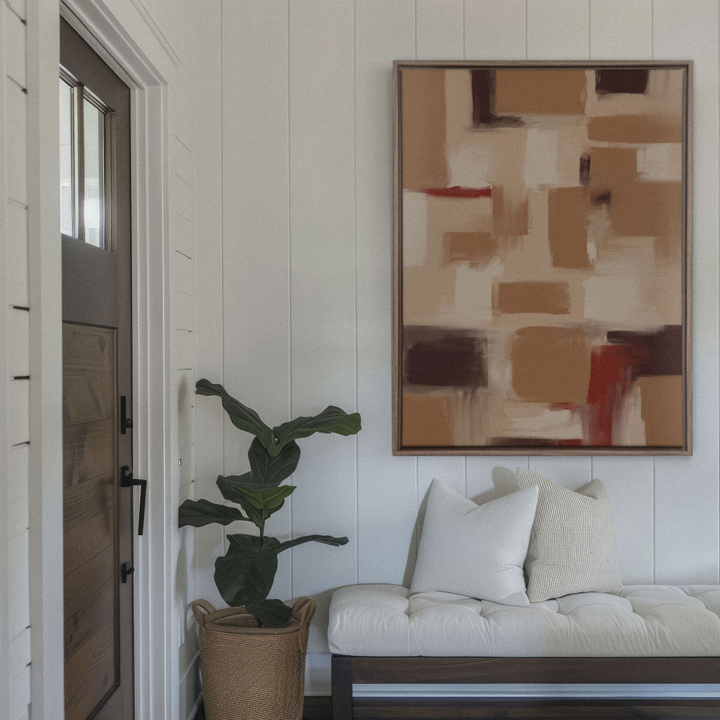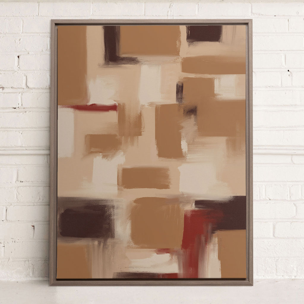 Les nuances subtiles de marron, beige et rouge créent une harmonie visuelle qui évoque une ambiance cosy et raffinée. "Traits" est disponible en plusieurs tailles pour s'intégrer parfaitement à votre décor intérieur.