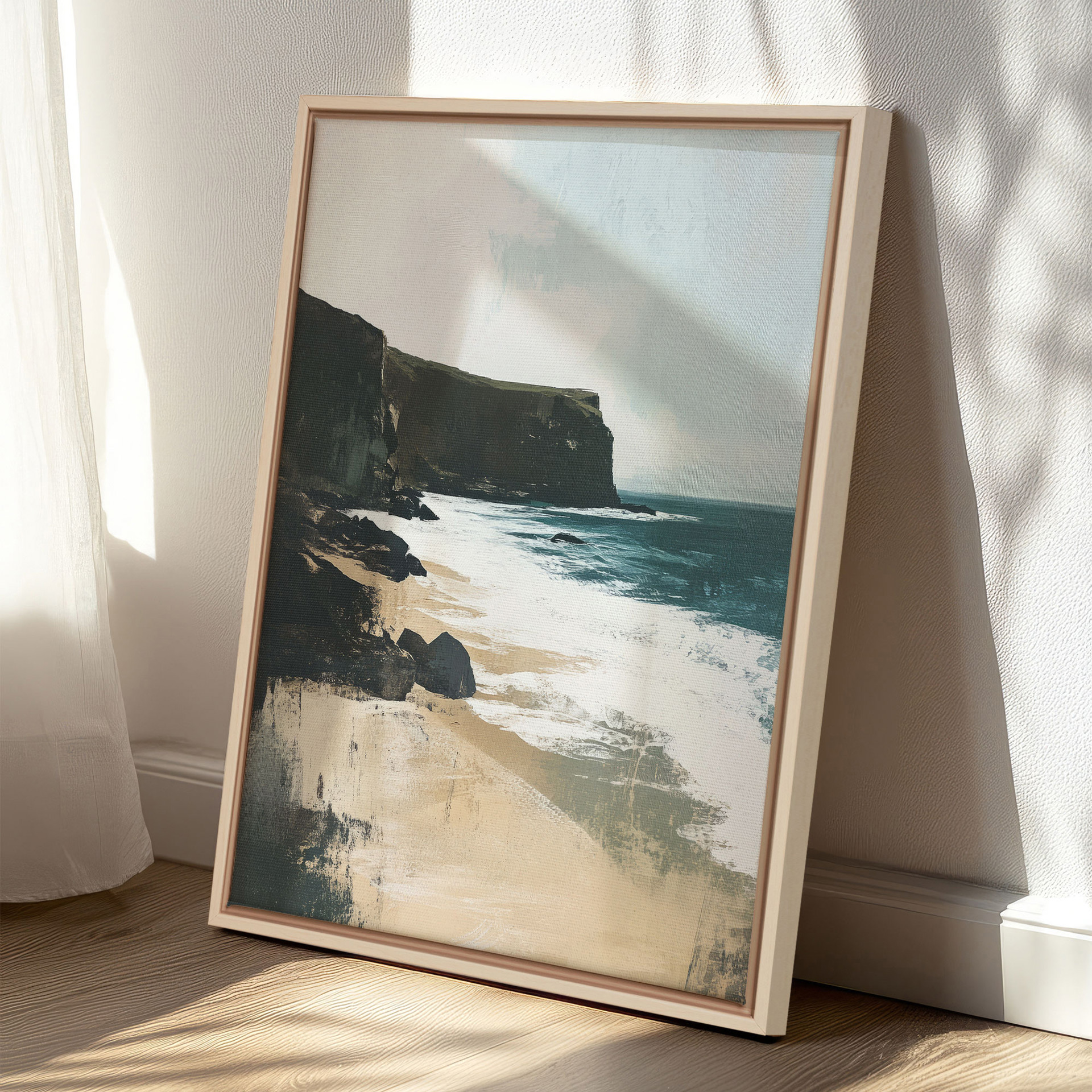 Capturez la beauté rugueuse des falaises côtières avec notre impression sur toile "Majestic Cliffs". Cette œuvre saisissante représente une scène côtière sereine avec des falaises imposantes et des vagues douces.