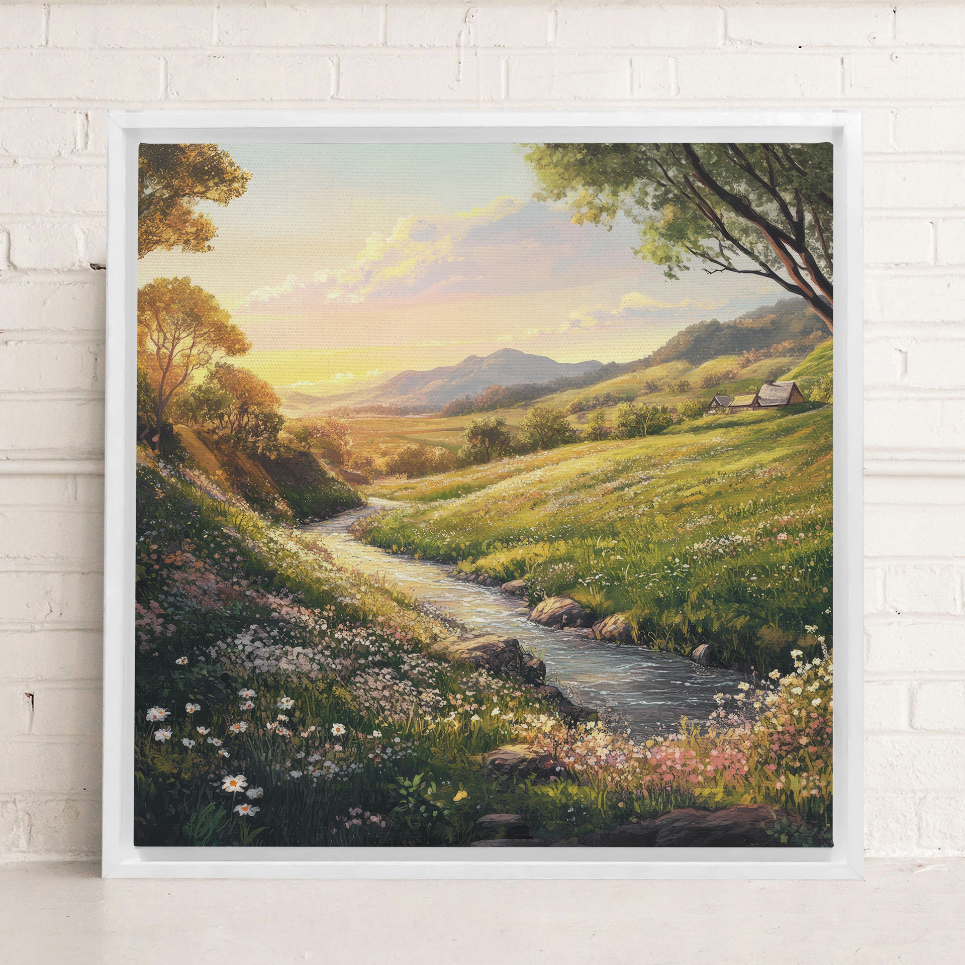 Plongez dans la sérénité d'un paysage idyllique avec notre impression sur toile "Virgo's Haven". Créée spécialement pour la saison de la Vierge, cette œuvre d'art captivante capture l'essence d'une journée paisible à la campagne, avec un ruisseau scintillant serpentant à travers une vallée verdoyante parsemée de fleurs sauvages.
