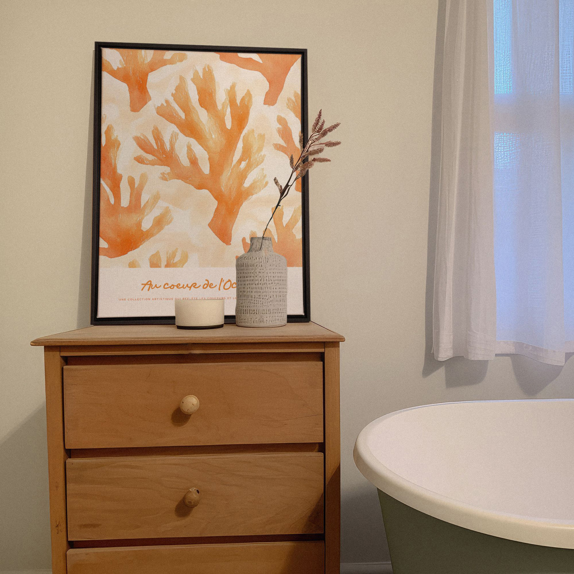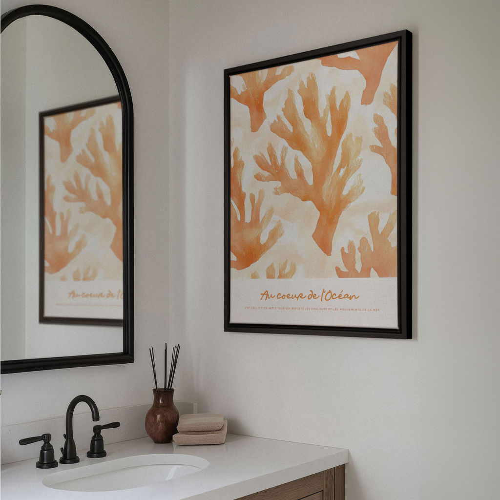 Apportez la sérénité et la beauté des fonds marins dans votre salle de bain avec la toile "Au Cœur de l'Océan 2’’.  Les motifs doux et les couleurs harmonieuses créent une ambiance de tranquillité et d'élégance, parfaite pour rehausser la décoration de votre salle de bain.