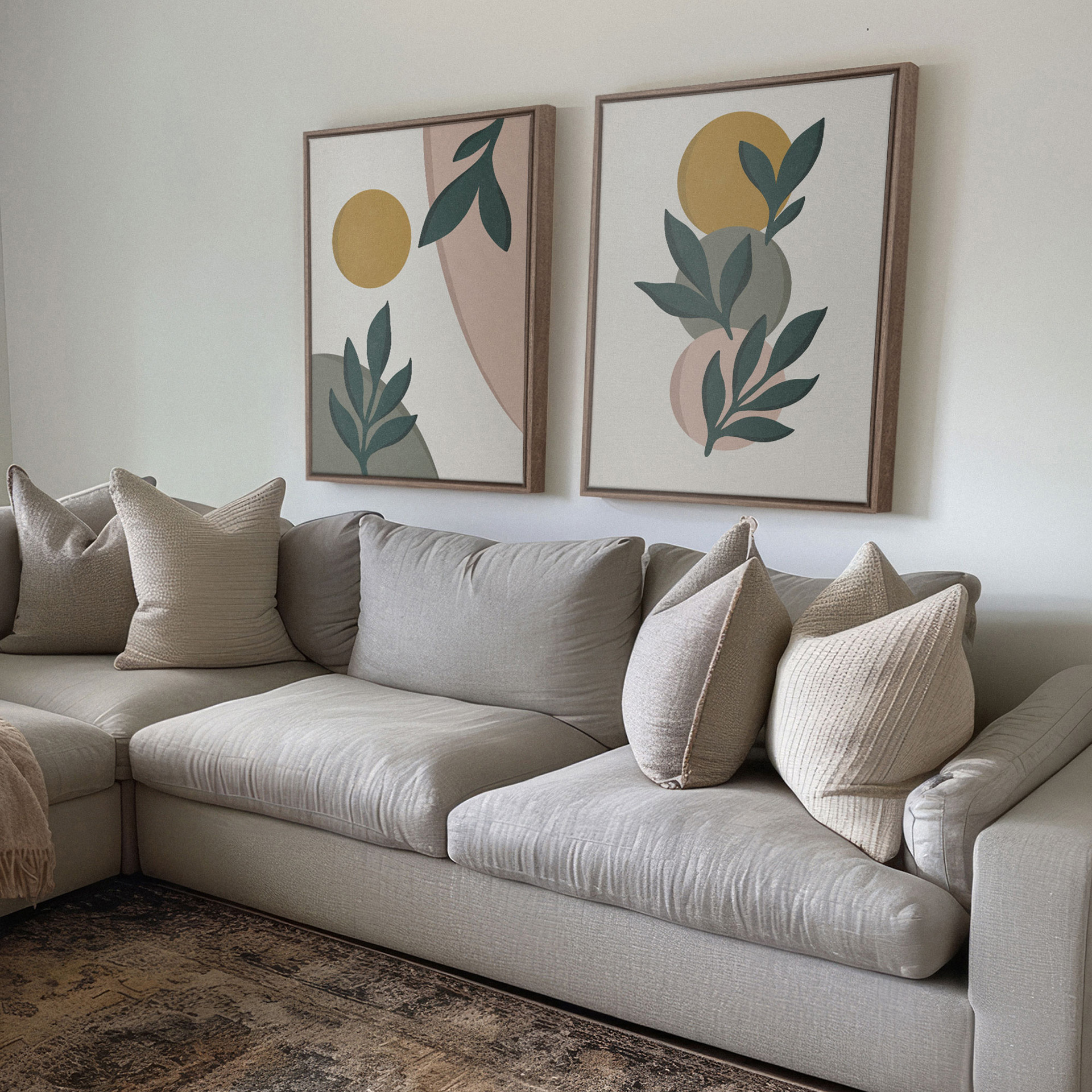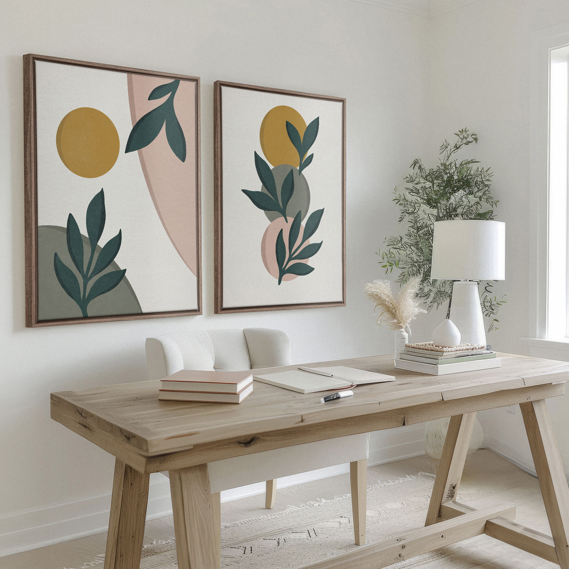 Les nuances vives et les formes organiques se marient harmonieusement pour créer une ambiance dynamique et rafraîchissante. Parfaites pour ajouter une touche de couleur et de vitalité à n'importe quel intérieur, ces impressions sont idéales pour un salon, une chambre ou un espace de travail moderne.