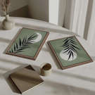 Chaque pièce présente un délicat feuillage noir sur un fond vert doux, avec la présence lumineuse de la lune créant un contraste apaisant. Les textures subtiles et la palette monochromatique ajoutent une touche sophistiquée, faisant de ces œuvres un ajout parfait à tout décor moderne, bohème ou inspiré par la nature.