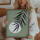 Chaque pièce présente un délicat feuillage noir sur un fond vert doux, avec la présence lumineuse de la lune créant un contraste apaisant. Les textures subtiles et la palette monochromatique ajoutent une touche sophistiquée, faisant de ces œuvres un ajout parfait à tout décor moderne, bohème ou inspiré par la nature.
