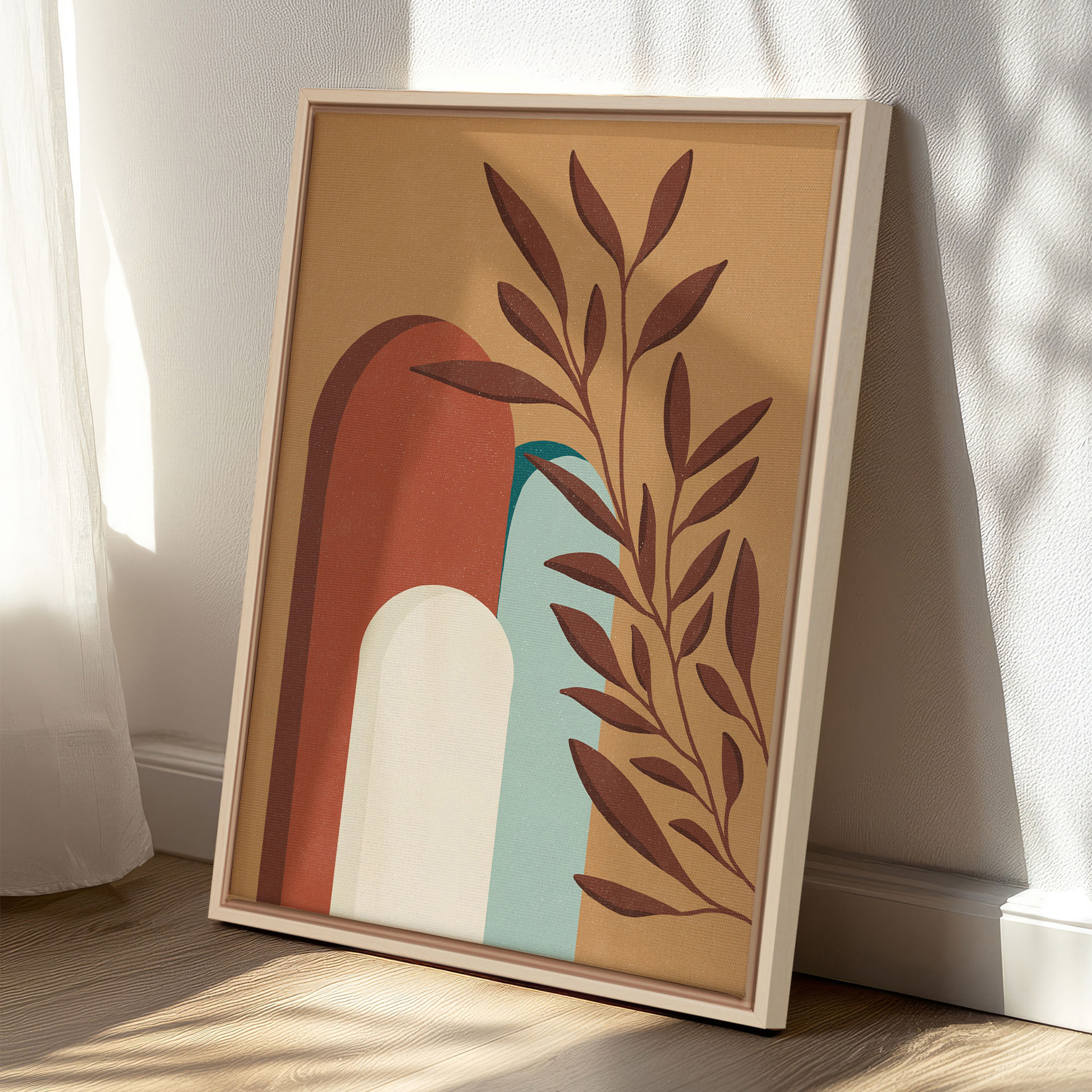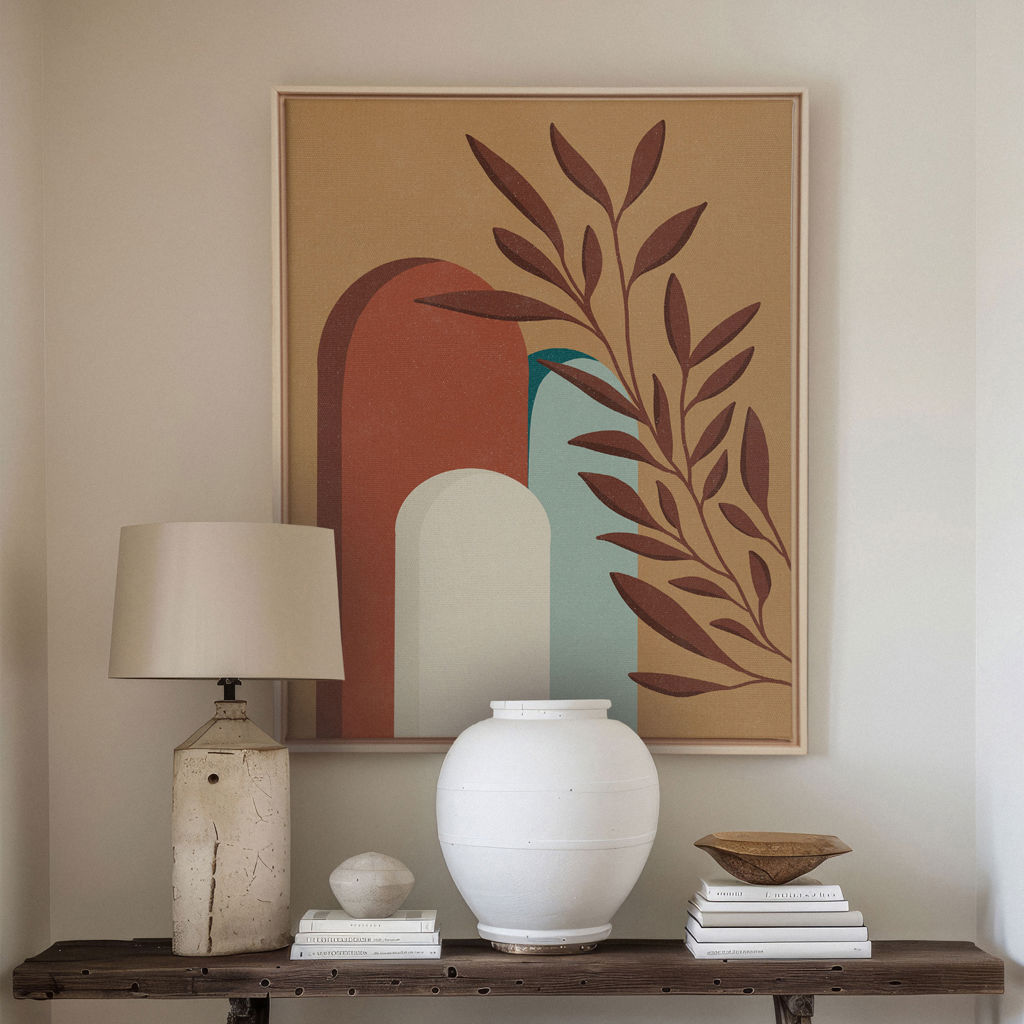 Les nuances de terracotta, d'ocre et de vert doux s'harmonisent parfaitement pour créer une ambiance accueillante et apaisante. Idéales pour un salon, une chambre ou un espace de travail, ces impressions apporteront une touche de nature et de chaleur à votre décoration.