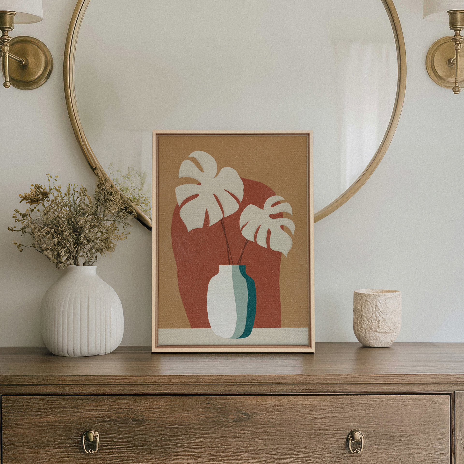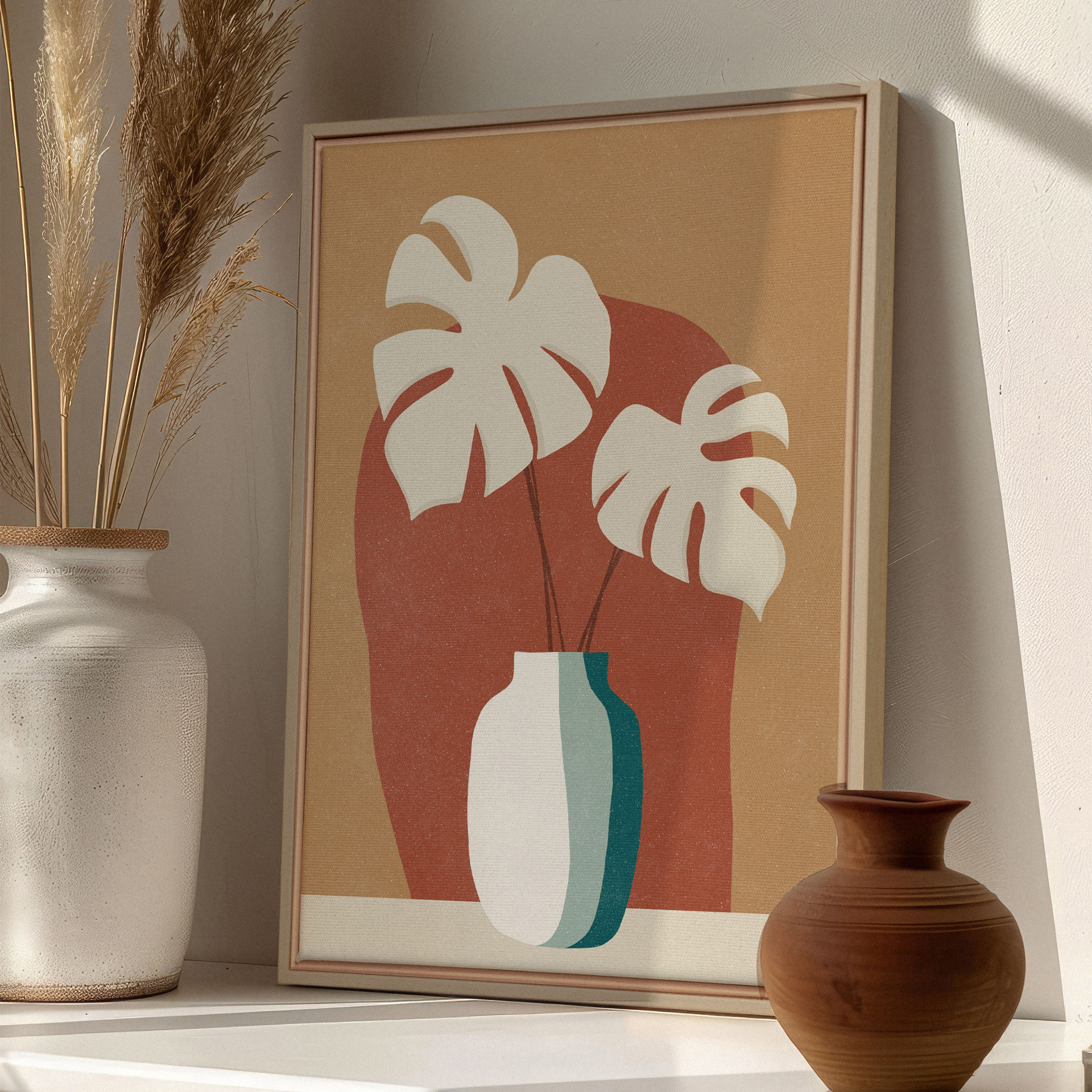 Les nuances de terracotta, d'ocre et de vert doux s'harmonisent parfaitement pour créer une ambiance accueillante et apaisante. Idéales pour un salon, une chambre ou un espace de travail, ces impressions apporteront une touche de nature et de chaleur à votre décoration.