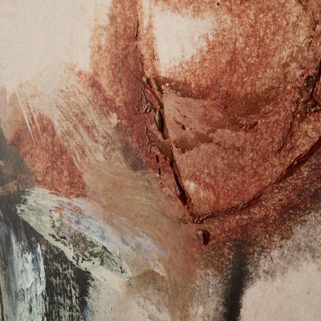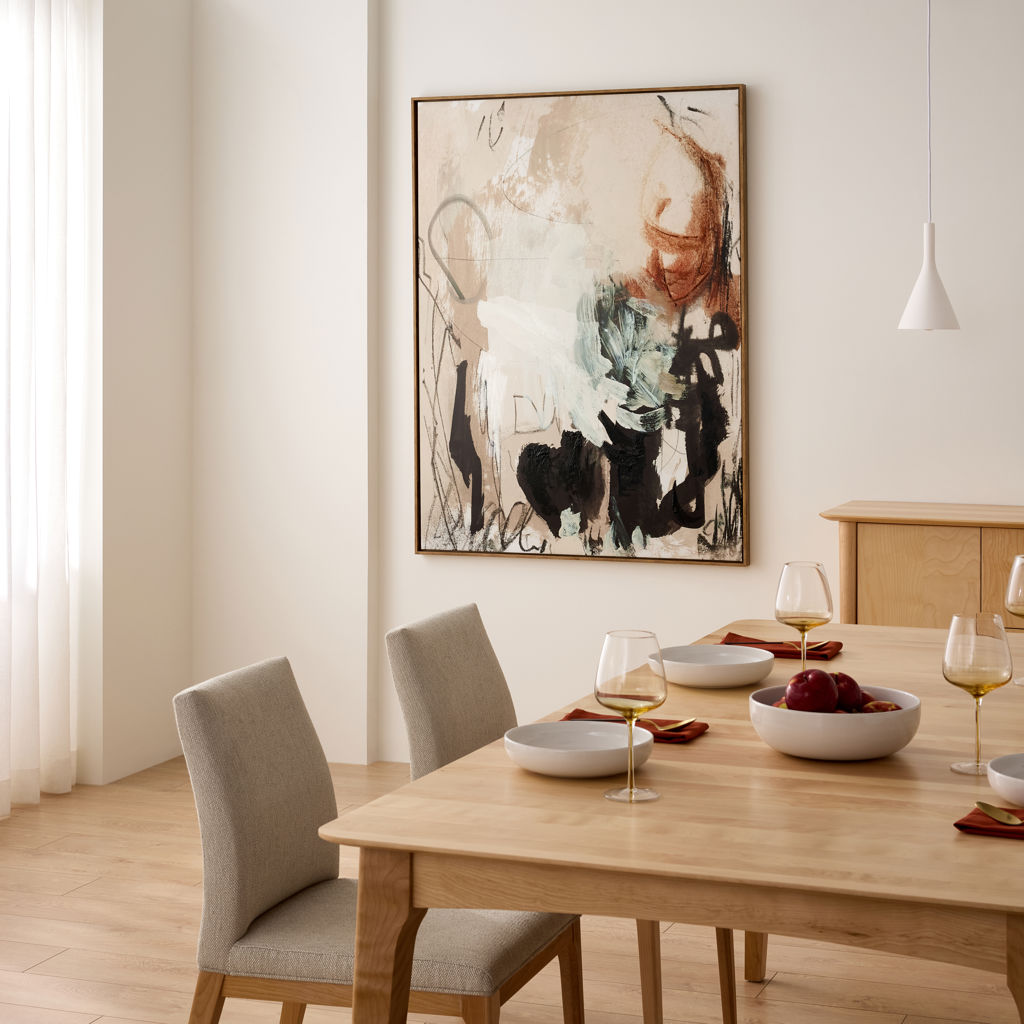 Ce tableau apporte une présence artistique chaleureuse grâce à ses nuances terreuses et ses touches contrastées. Les formes libres et les textures subtiles créent une composition dynamique qui attire naturellement le regard.