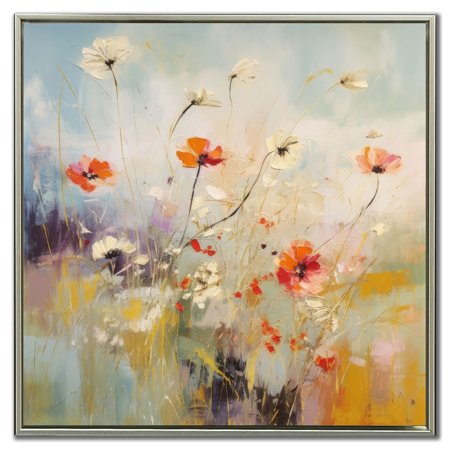 Apportez une touche de fraîcheur à votre décor avec cette œuvre lumineuse mettant en scène un champ de fleurs aux couleurs douces et vibrantes. Chaque détail évoque la légèreté et la beauté de la nature en mouvement.
