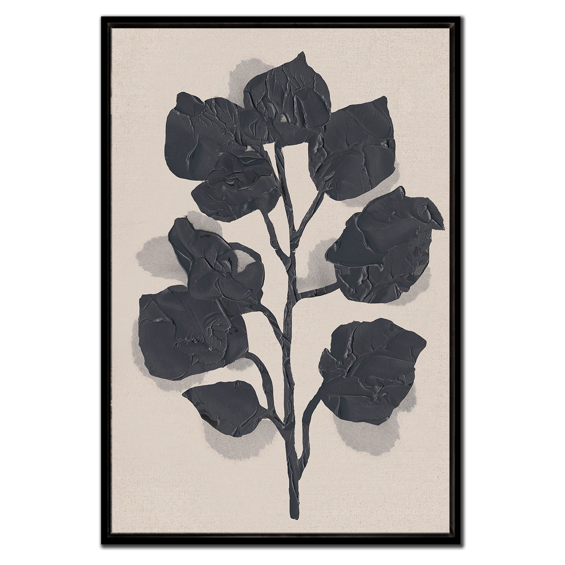 Ce tableau met en valeur une tige florale sculptée en relief, offrant une présence visuelle forte et élégante. Les pétales texturés créent un jeu d’ombre et de profondeur qui attire immédiatement le regard.