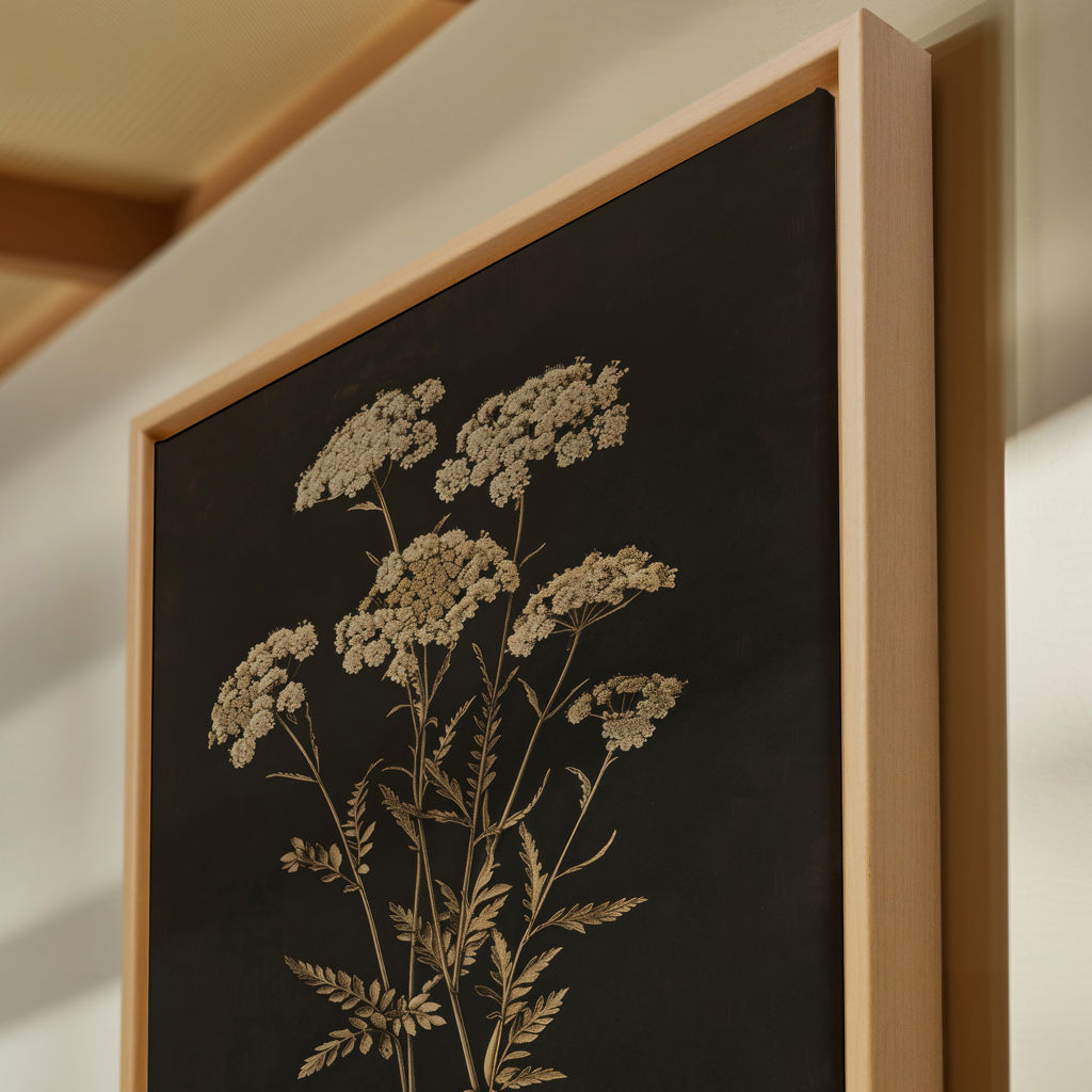 Fleur d'Or est une oeuvre délicate qui met en lumière une fleur stylisée aux accents dorés sur un fond doux et neutre.