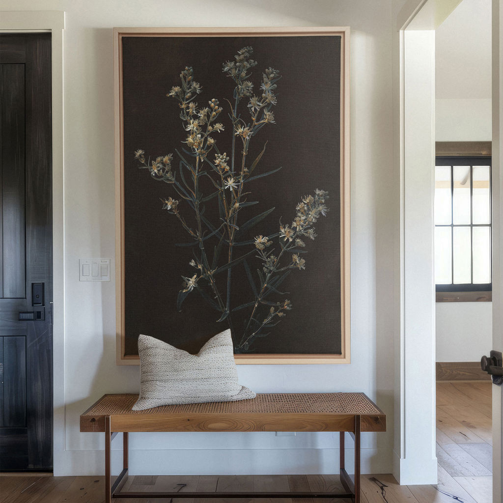 Fleur d'Argent capture la beauté d'une fleur subtilement argentée, apportant une touche fraîche et lumineuse à votre espace.