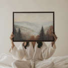 "Mountain Morning" vous transporte dans la quiétude d'un matin brumeux en montagne. Avec ses teintes douces de bleu, de gris et d'orange, ce modèle capture la sérénité des paysages alpins sous un voile de brouillard.