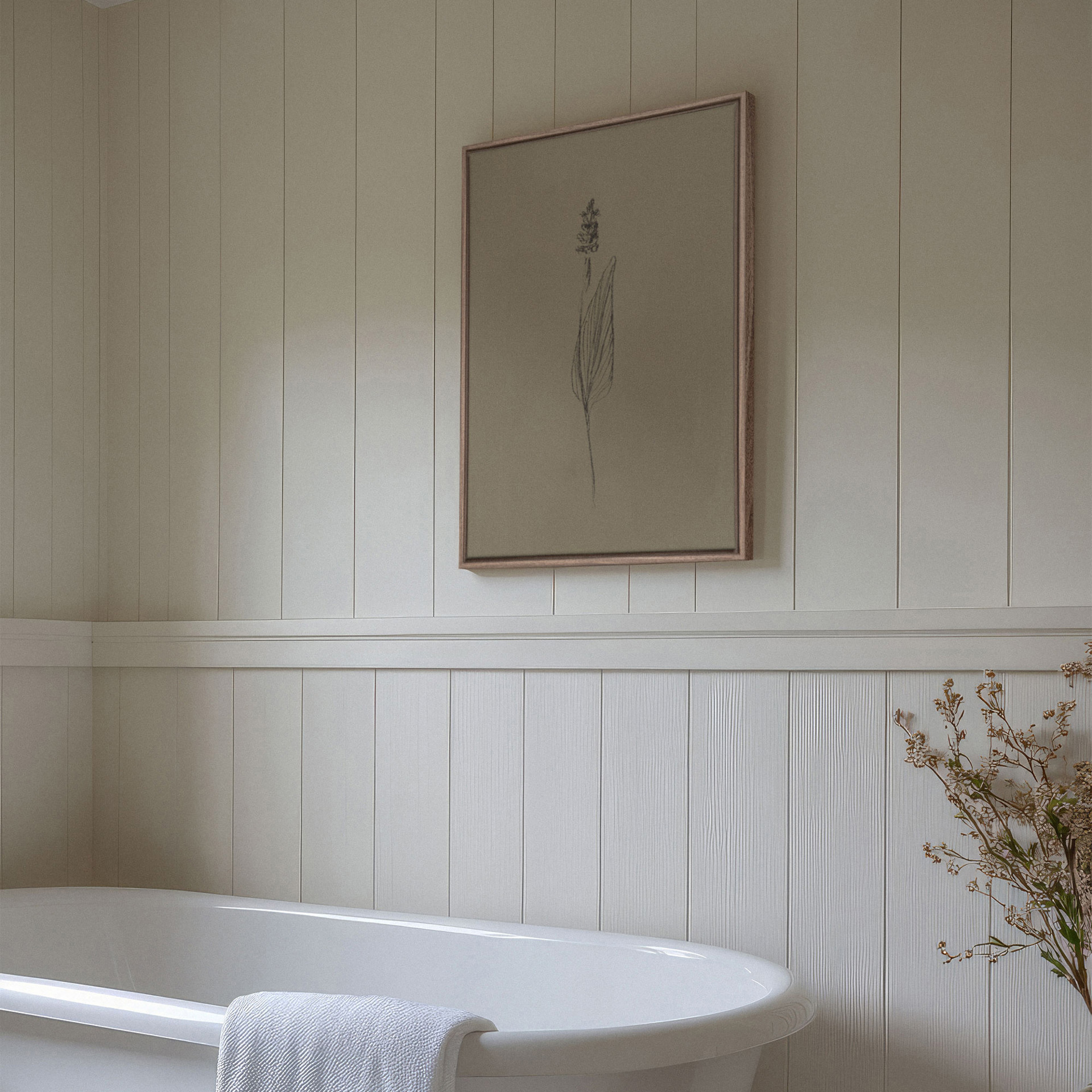 Les couleurs naturelles et subtiles de cette oeuvre s'harmonisent parfaitement avec des espaces qui privilégient une décoration inspirée de la nature.