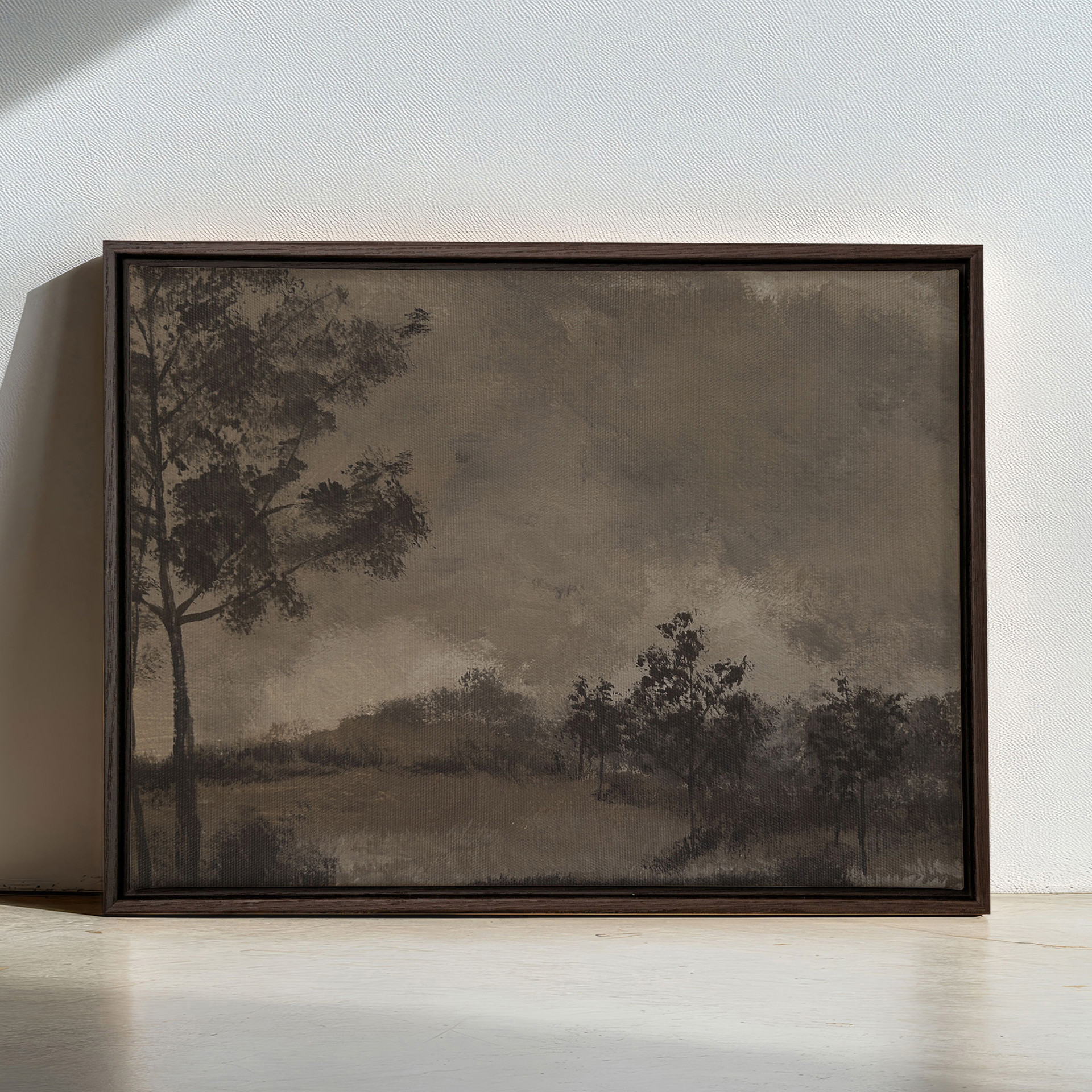 Plongez dans l'atmosphère mystérieuse et captivante de nos toiles imprimées "Hazy Woods". Disponible en deux variantes de couleur, Dark et Neutral, cette oeuvre transporte le spectateur au coeur d'une forêt embrumée, où les arbres se dressent majestueusement sur une colline lointaine.