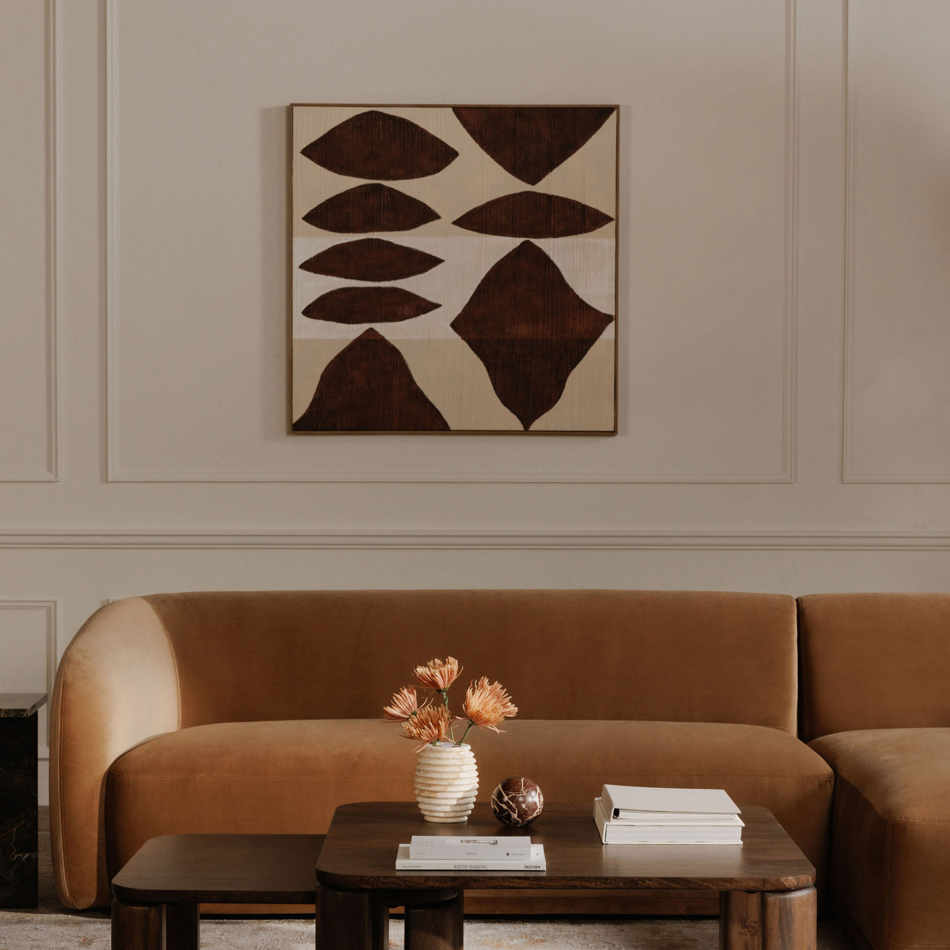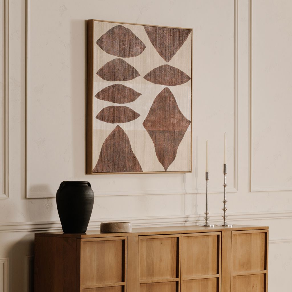 Réalisé en acrylique texturé avec des motifs linéaires raffinés, la toile encadré Amada incarne l'affection avec les teintes rouges foncées et des tons neutres apaisants.