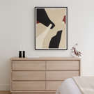 Apportez une touche moderne à votre décor avec ce tableau aux formes contrastantes et aux couleurs soigneusement équilibrées. Ses aplats noirs, crème et rouge créent une composition dynamique qui attire le regard sans surcharger l’espace.