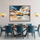 Ce tableau apporte une énergie vibrante à votre décor grâce à ses couleurs riches et à son mouvement visuel expressif. Ses tons chauds et froids se mêlent pour créer une composition dynamique qui attire immédiatement le regard.