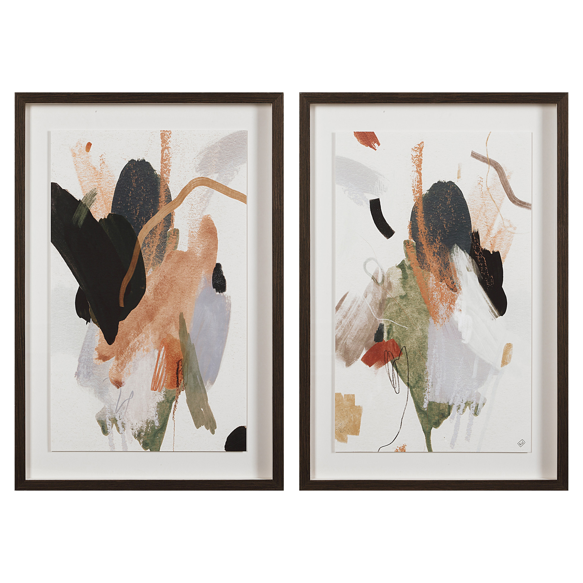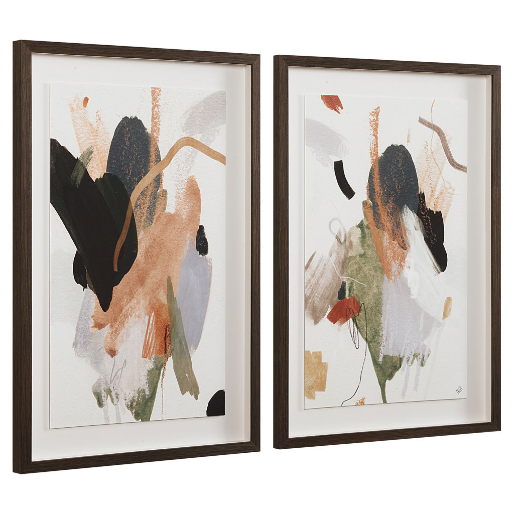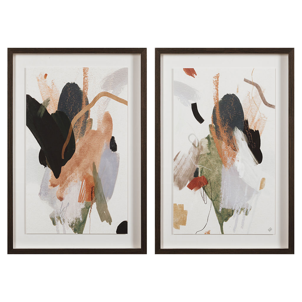 Les tons pastel et les neutres s'associent pour faire naître une palette à la fois apaisante et dynamisée dans ce superbe duo d'art mural abstrait. Conçu pour donner l'impression que la portion imprimée se détache de la couche de papier, cet élégant duo encadré viendra alléger l'endroit où il sera posé.