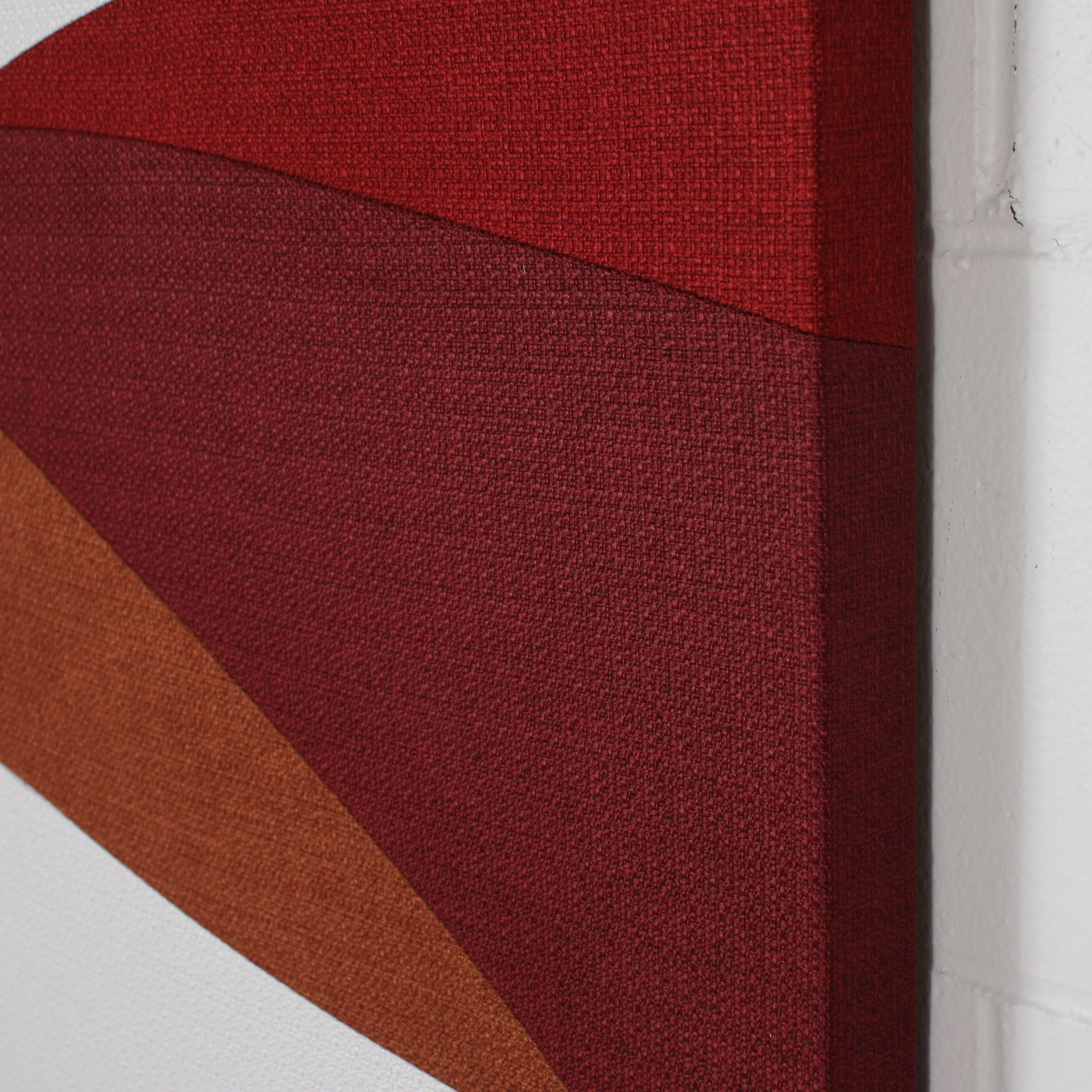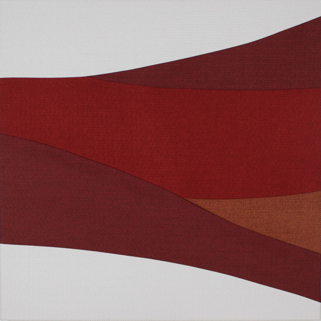 Le dessin est composé de formes en tissu taillées, cousues et assemblées à la main. Chaque tableau est fabriqué sur demande en atelier à Québec et signé par l'artiste.