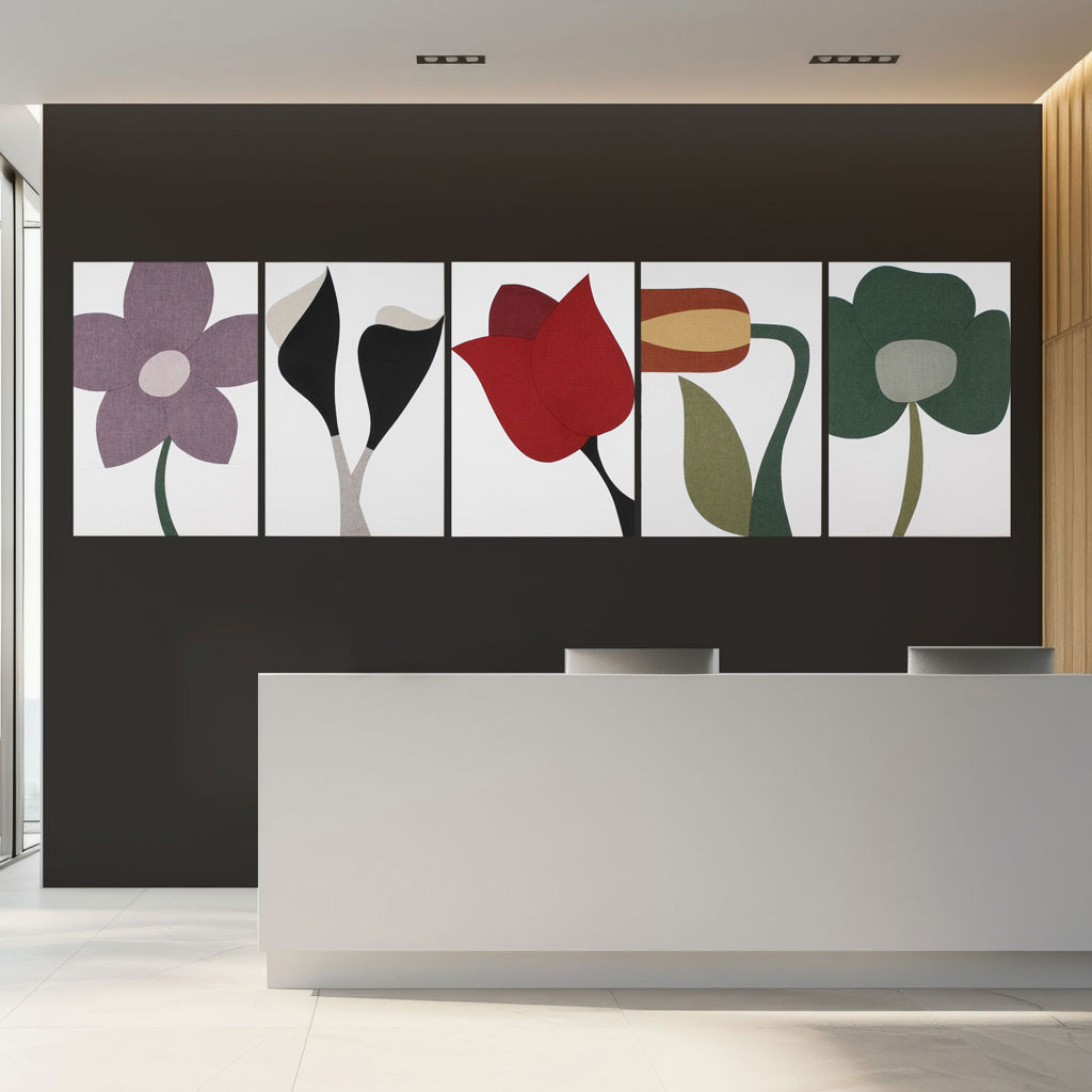 La murale BOTANIC est une composition minimaliste de 5 tableaux représentant chacun une fleur unique et tout simplement magnifique.