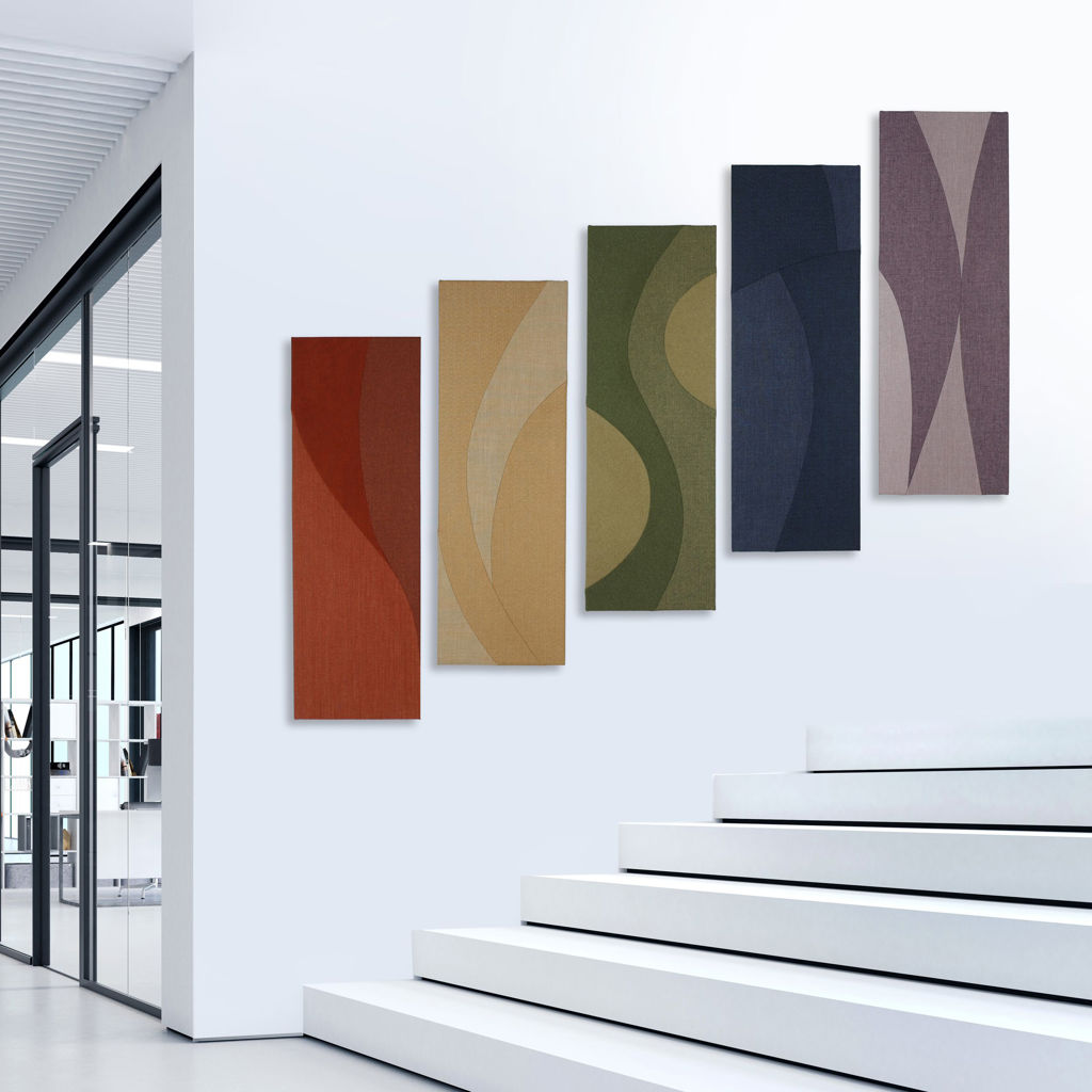 Ces tableaux en tissu, en plus d'offrir une ambiance des plus chaleureuse offrent des propriétés acoustiques qui aideront à réduire les nuisances sonores dans votre environnement.