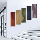 La murale STEP COLOR est une composition minimaliste géométrique de 5 tableaux dans des tons colorés.