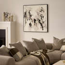Des accents embellis à la main ajoutent de la texture et de l´intérêt sur cette toile de coton et de lin de haute qualité qui est prête à attirer l´attention dans n´importe quel espace élégant.