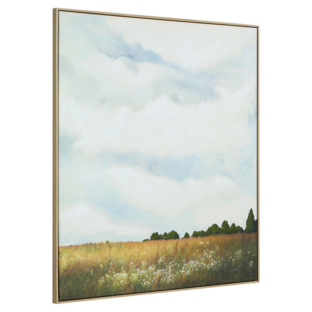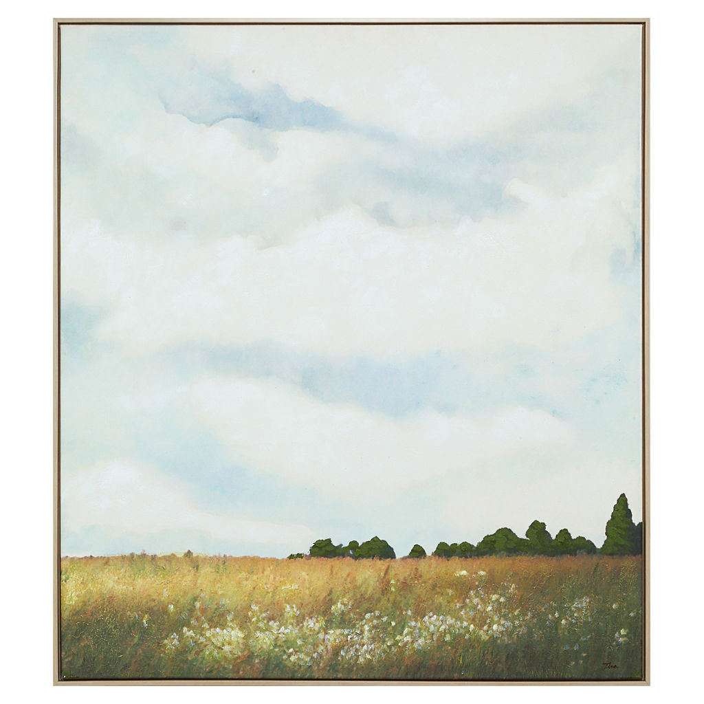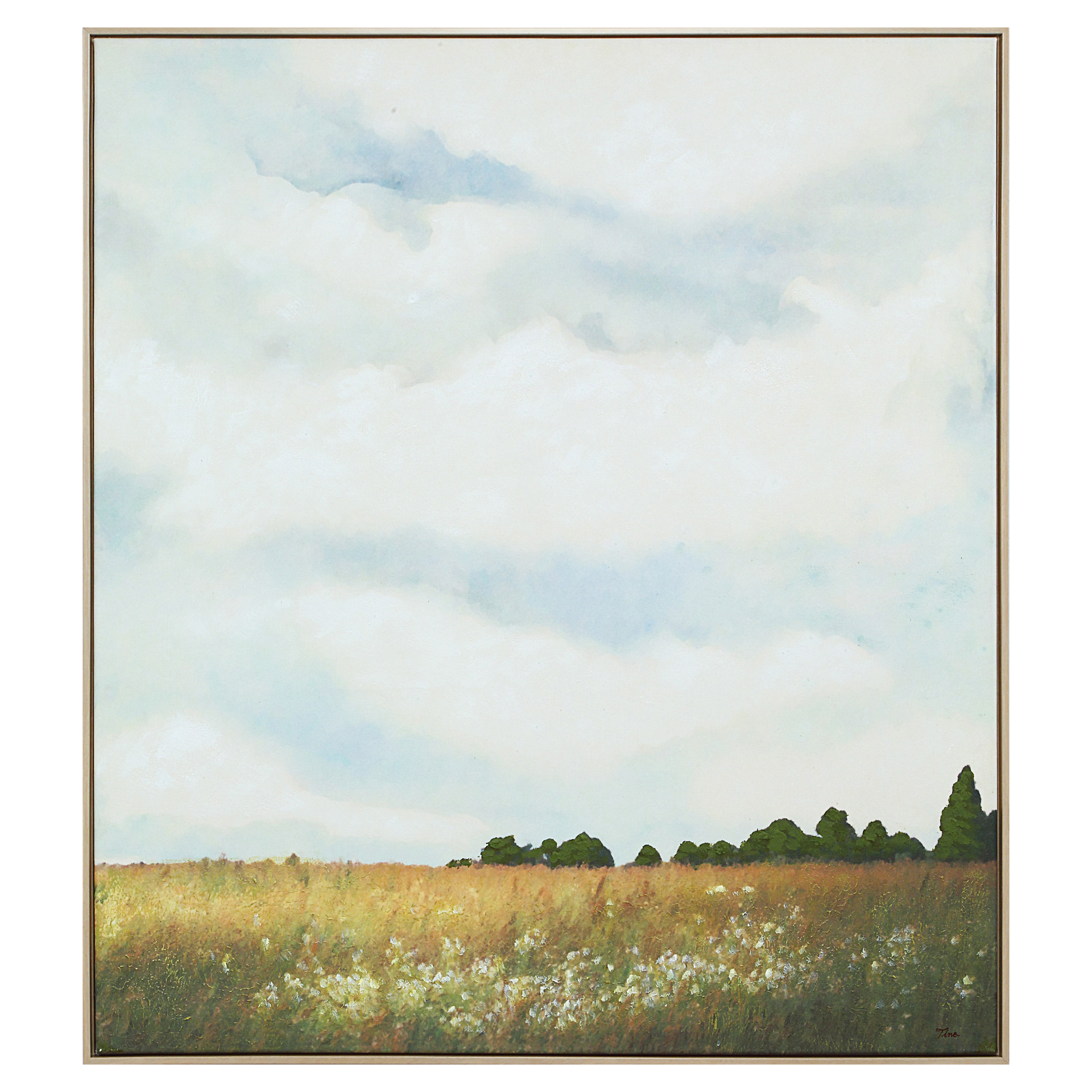 Rehaussez n´importe quel intérieur avec la touche de nature incarnée par cette magnifique peinture de paysage. Astucieusement ornée d´accents peints à la main, ses nuances de vert et de bleu doux aux riches teintes se réunissent dans une rencontre harmonieuse de la terre et du ciel pour créer un point focal accrocheur dans n´importe quelle pièce. Enveloppé dans un nouveau cadre au fini bois blanchi, cet art mural est prêt à impressionner.