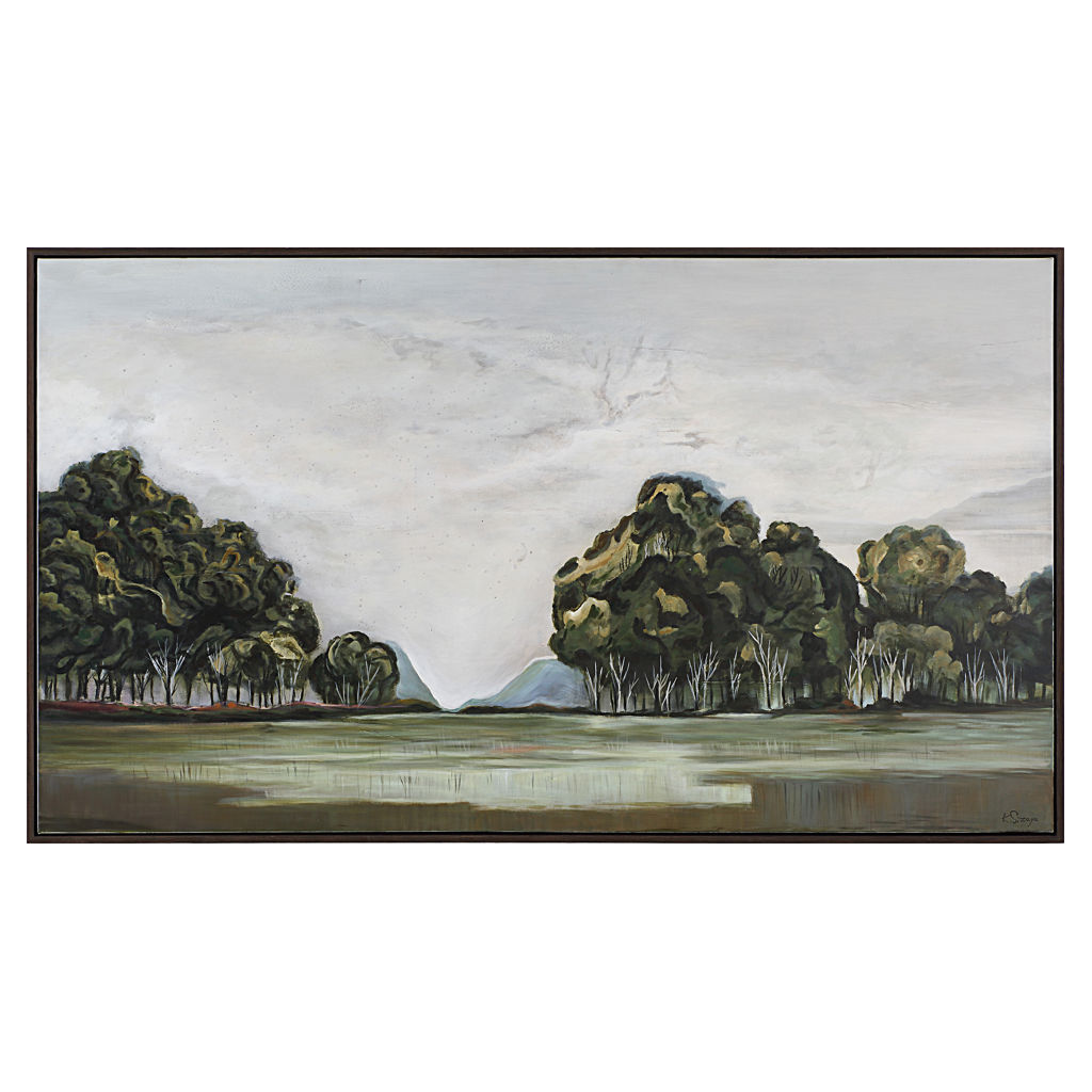 Créée comme une pièce généreuse de 70 pouces de long, cette magnifique peinture de paysage est un choix idéal pour avoir un impact à grande échelle dans n'importe quel espace.