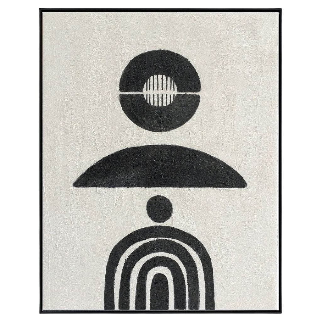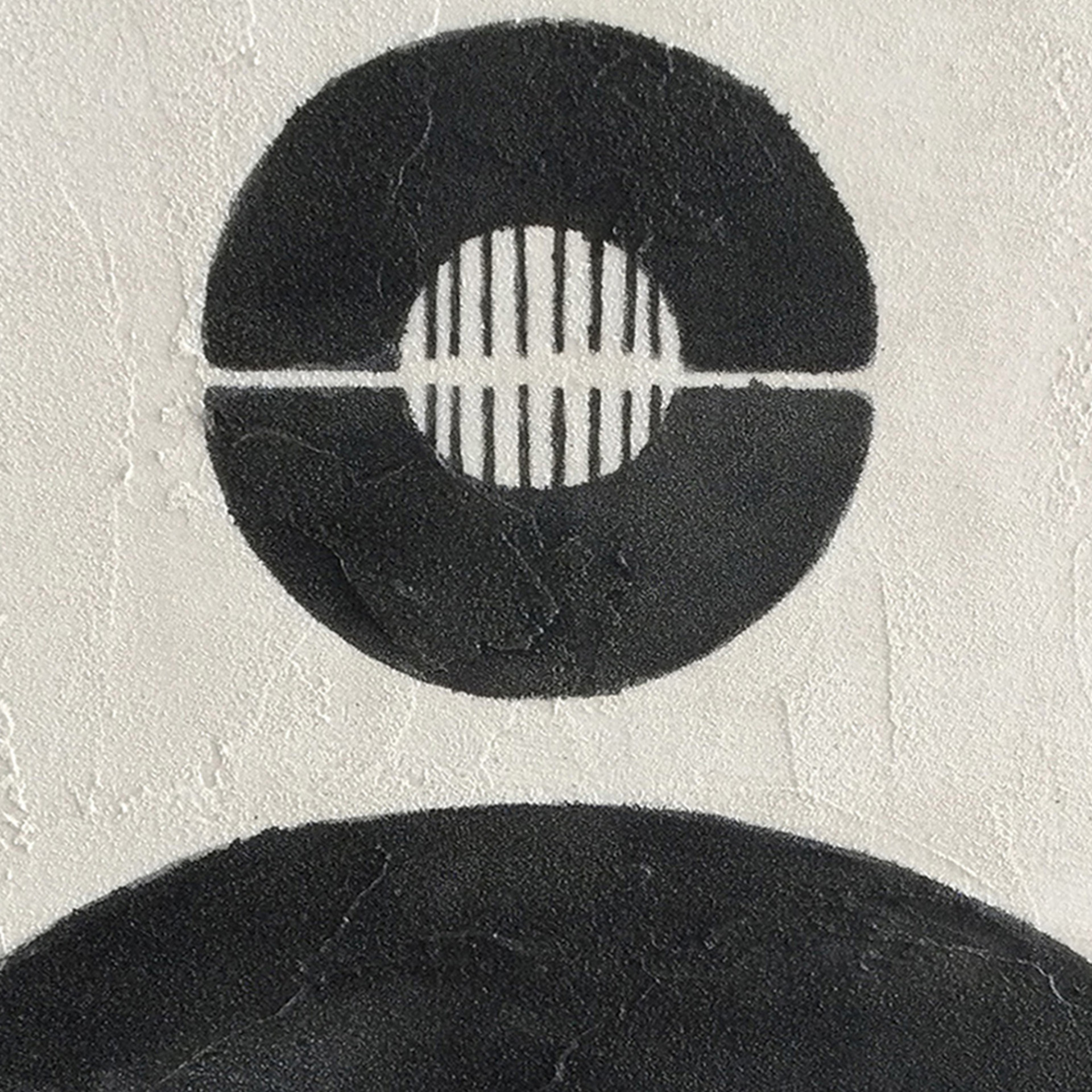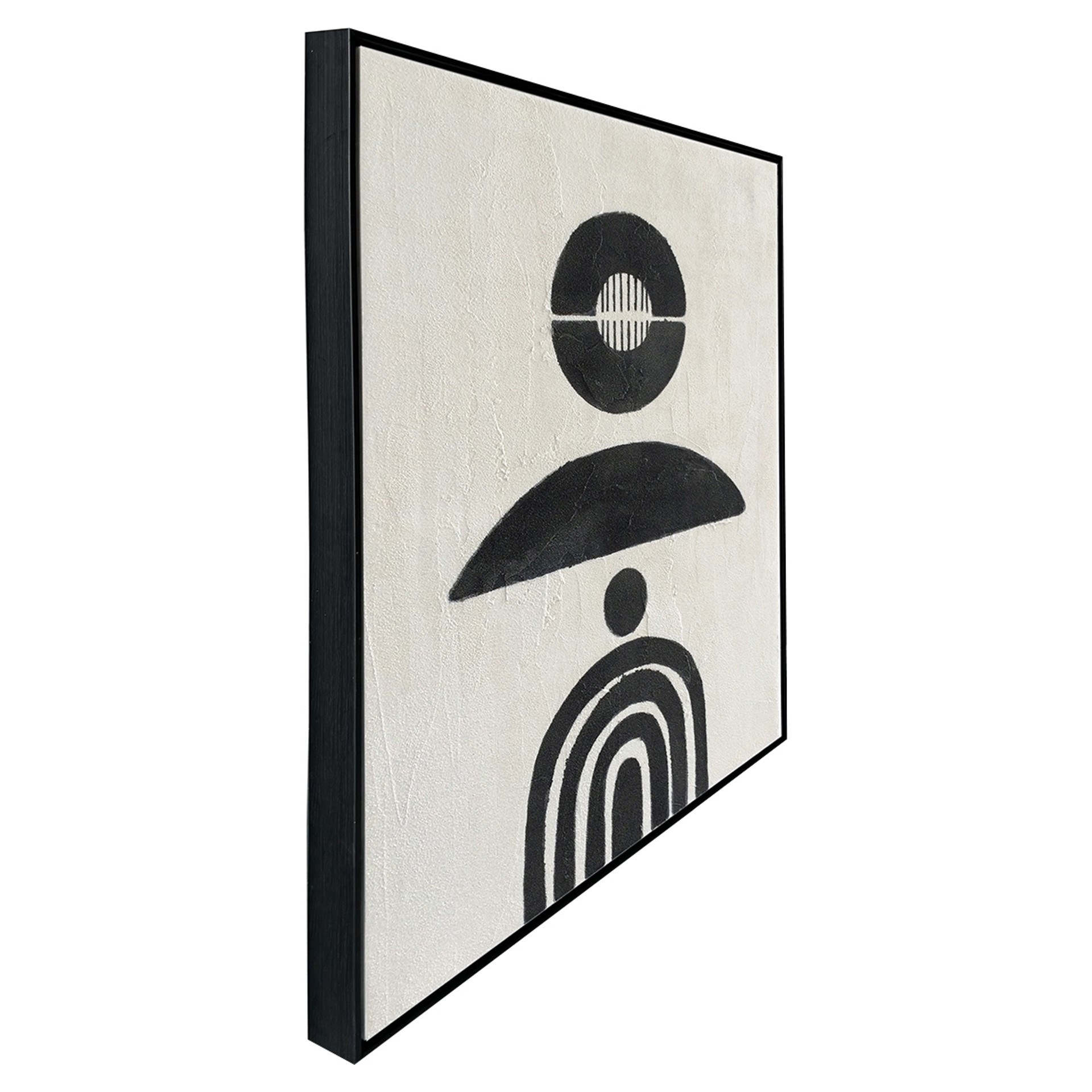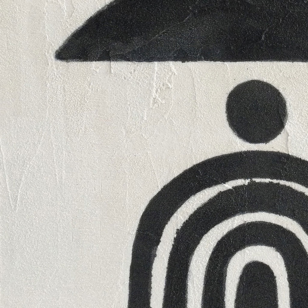 La peinture abstraite d´Ephimer présente des formes de style mira. Les lignes et la symétrie en noir et blanc ajoutent un air de calme et d´équilibre.