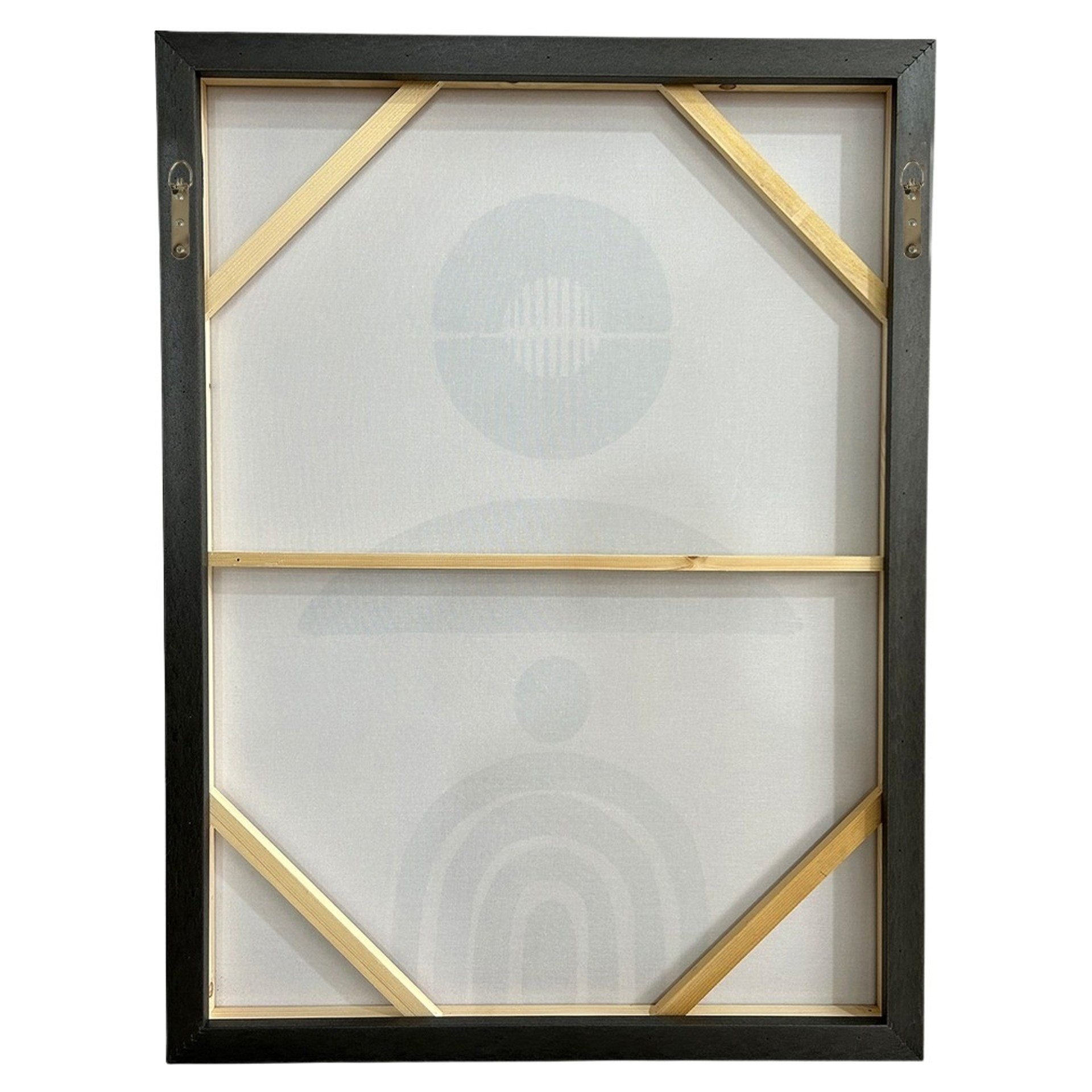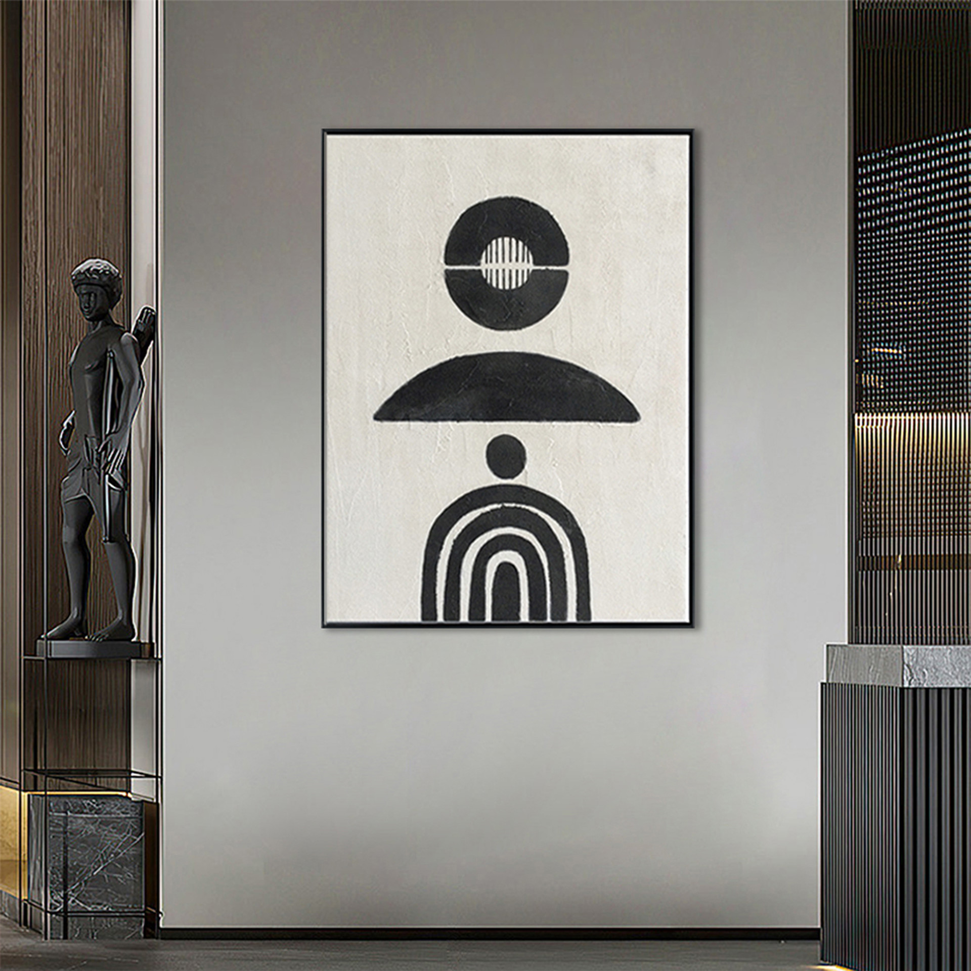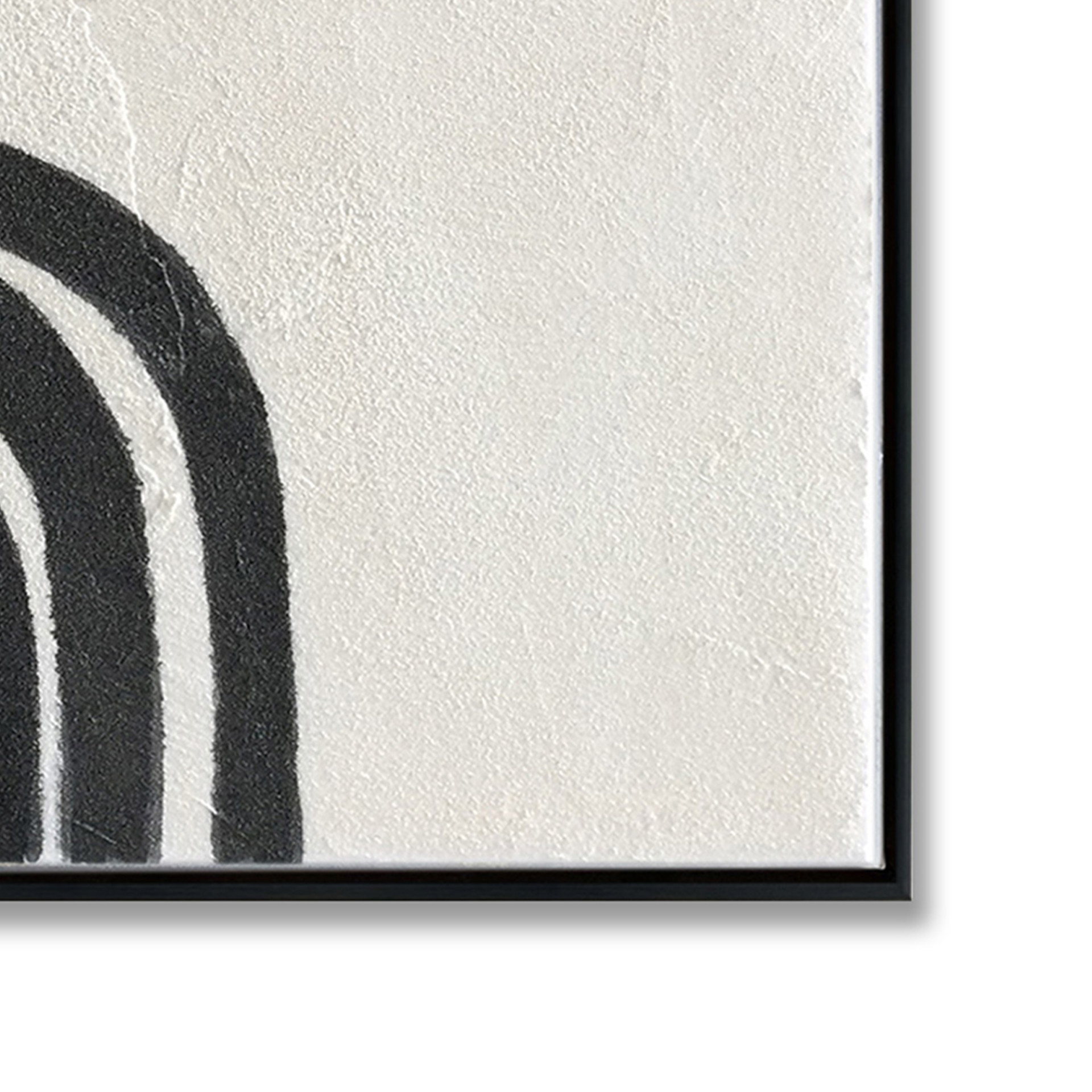 La peinture abstraite d´Ephimer présente des formes de style mira. Les lignes et la symétrie en noir et blanc ajoutent un air de calme et d´équilibre.