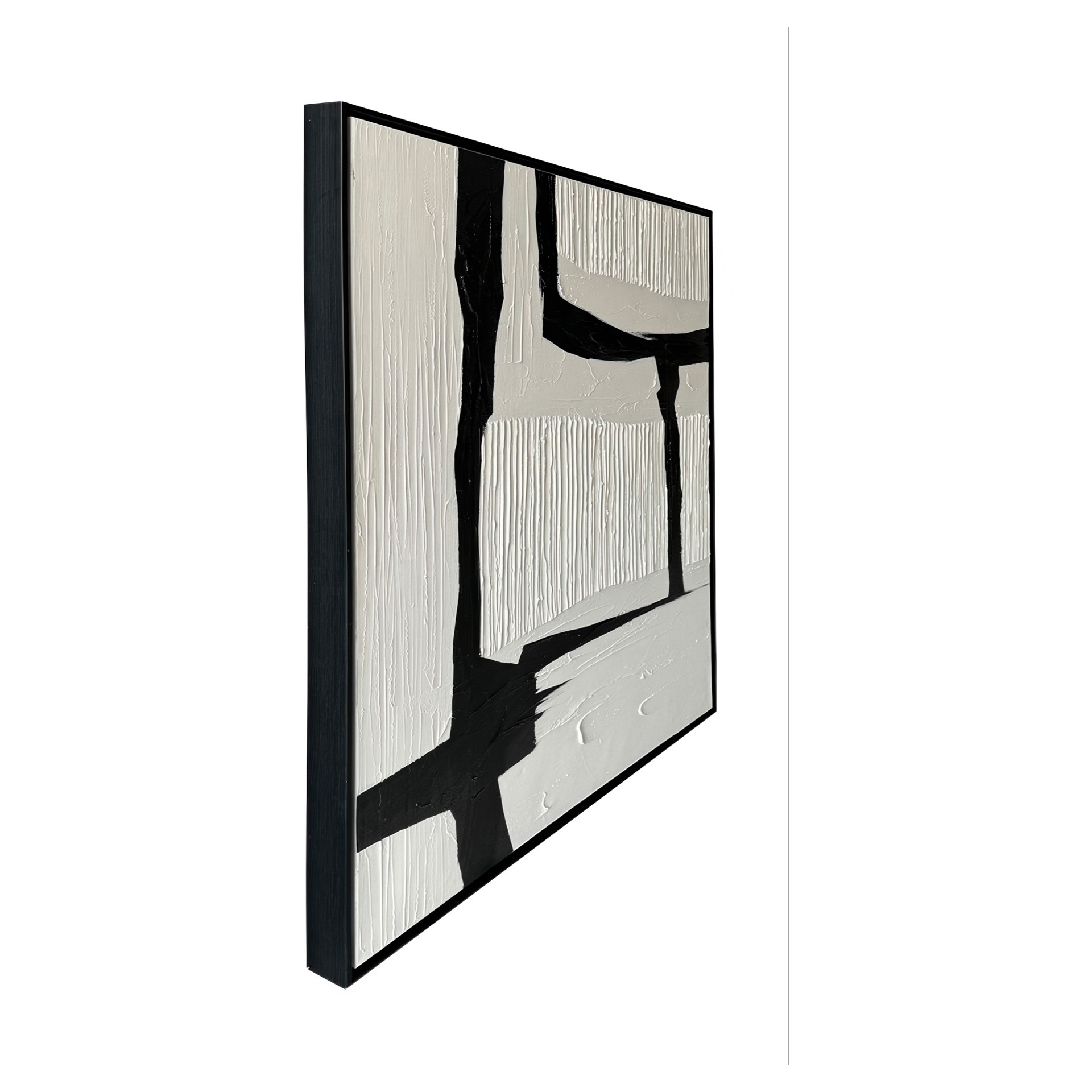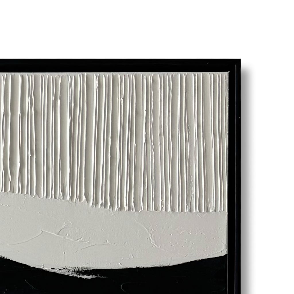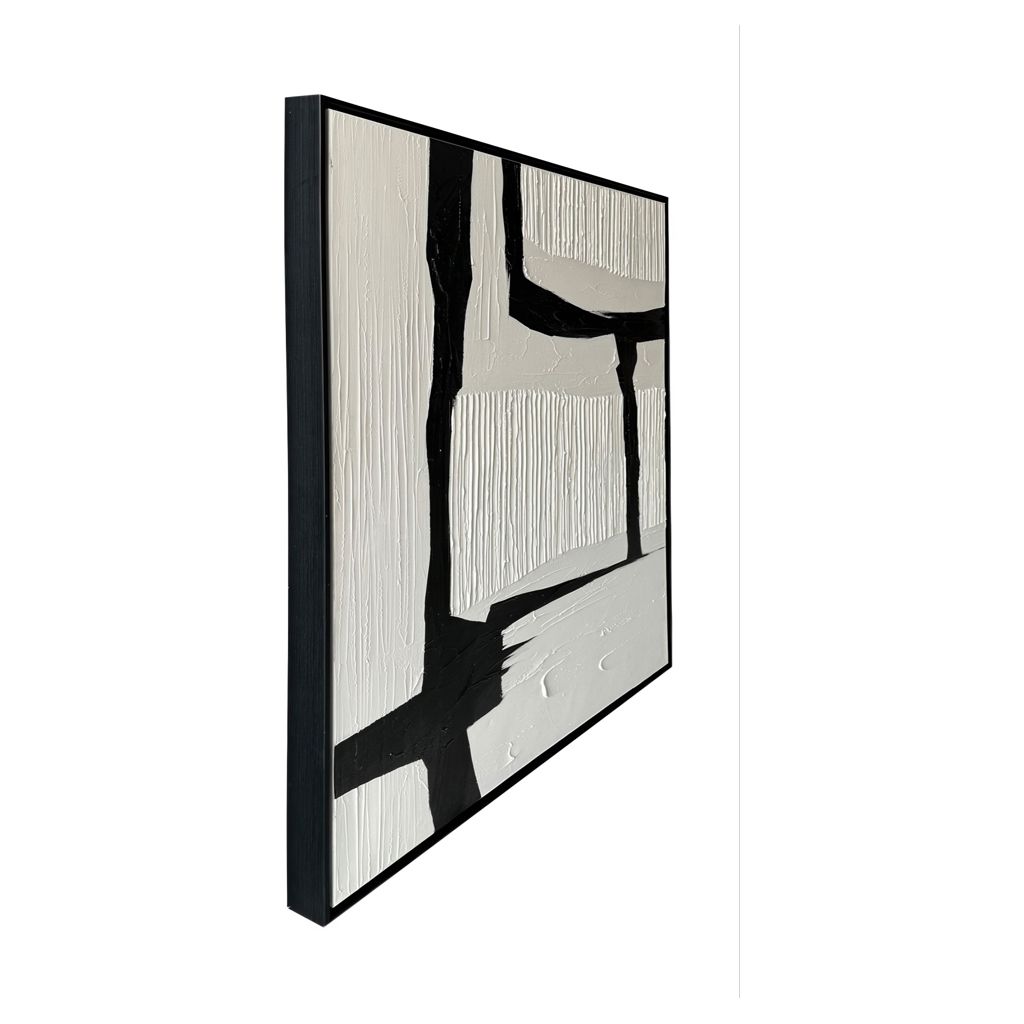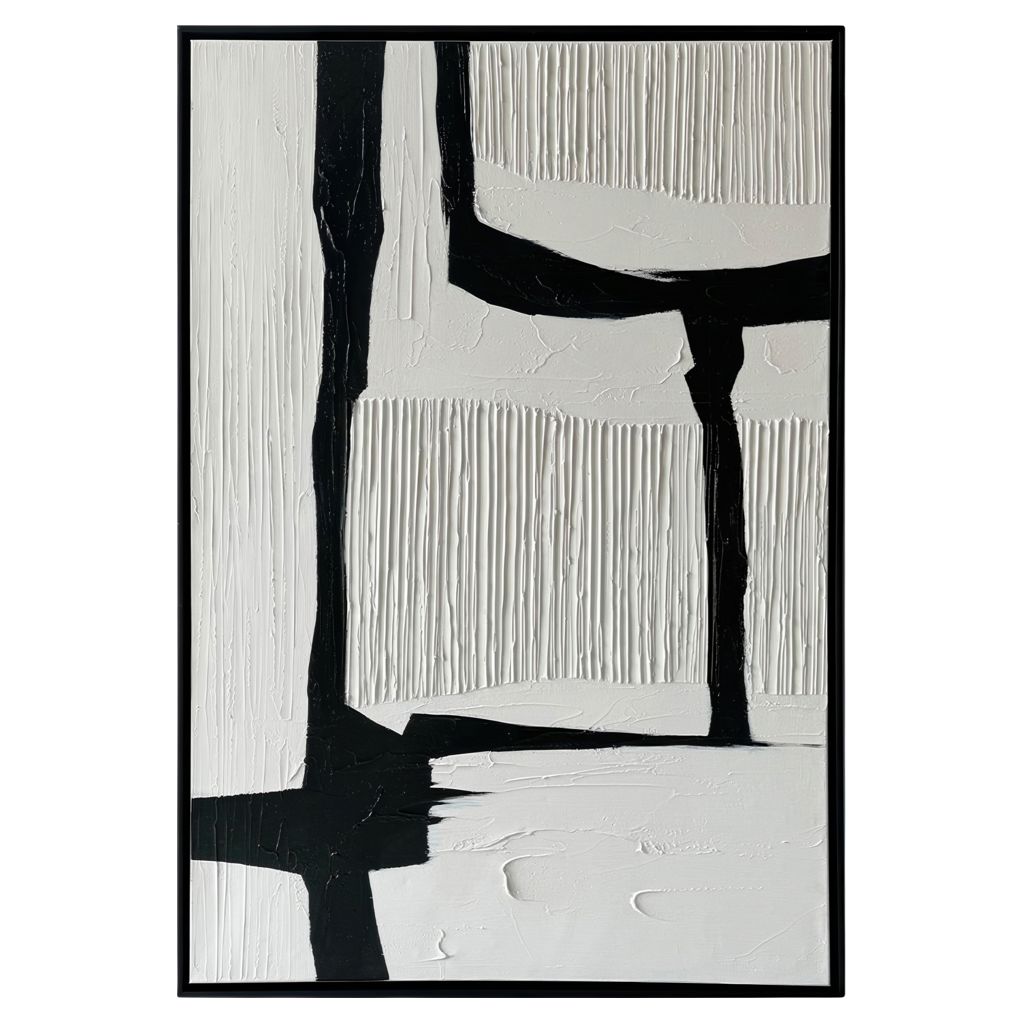La peinture abstraite Nuance dans des tons de noir et blanc dans un cadre de 36 x 48 po rehaussera votre espace avec des oeuvres d´art murales 100% peintes à la main, alliant sophistication moderne et artisanat.
