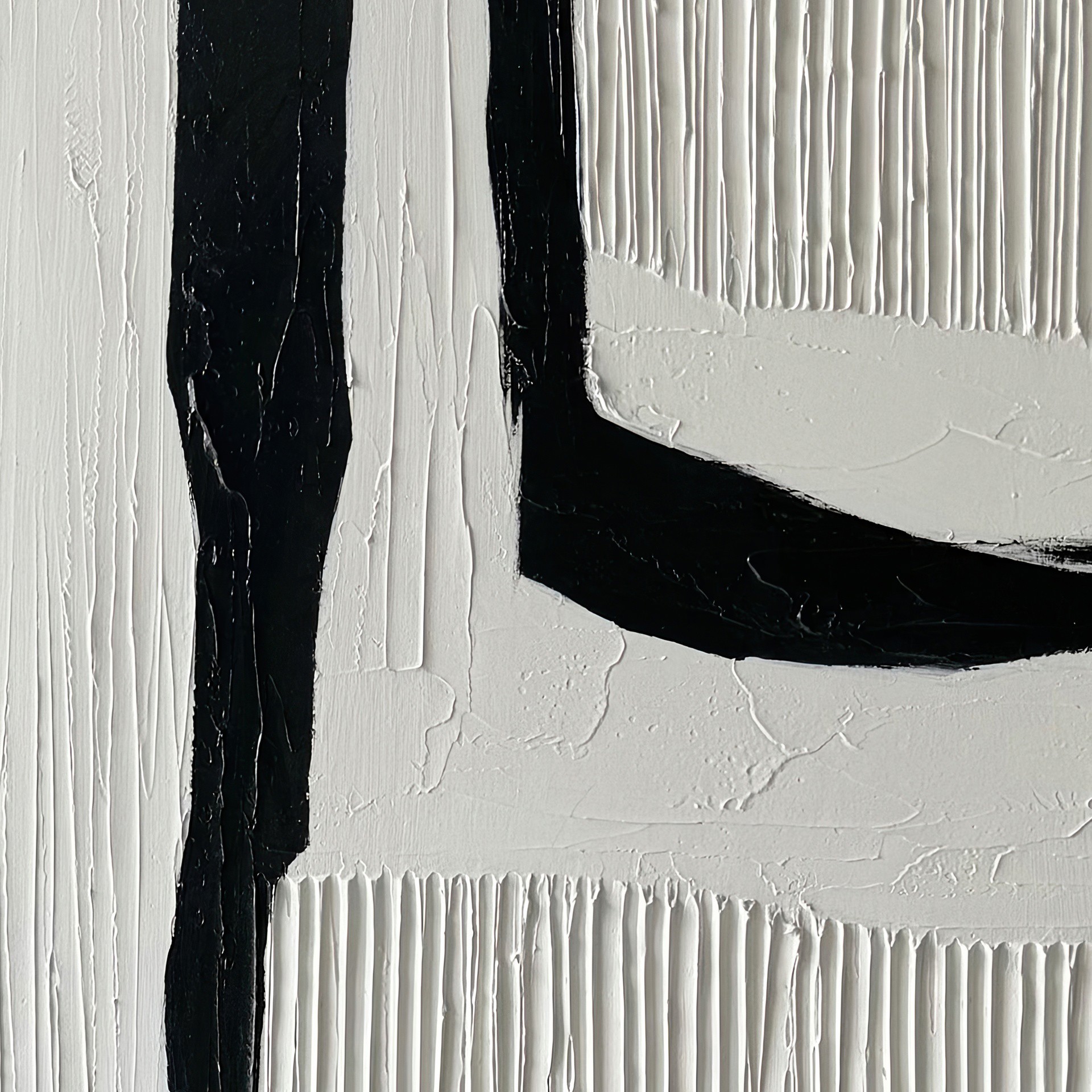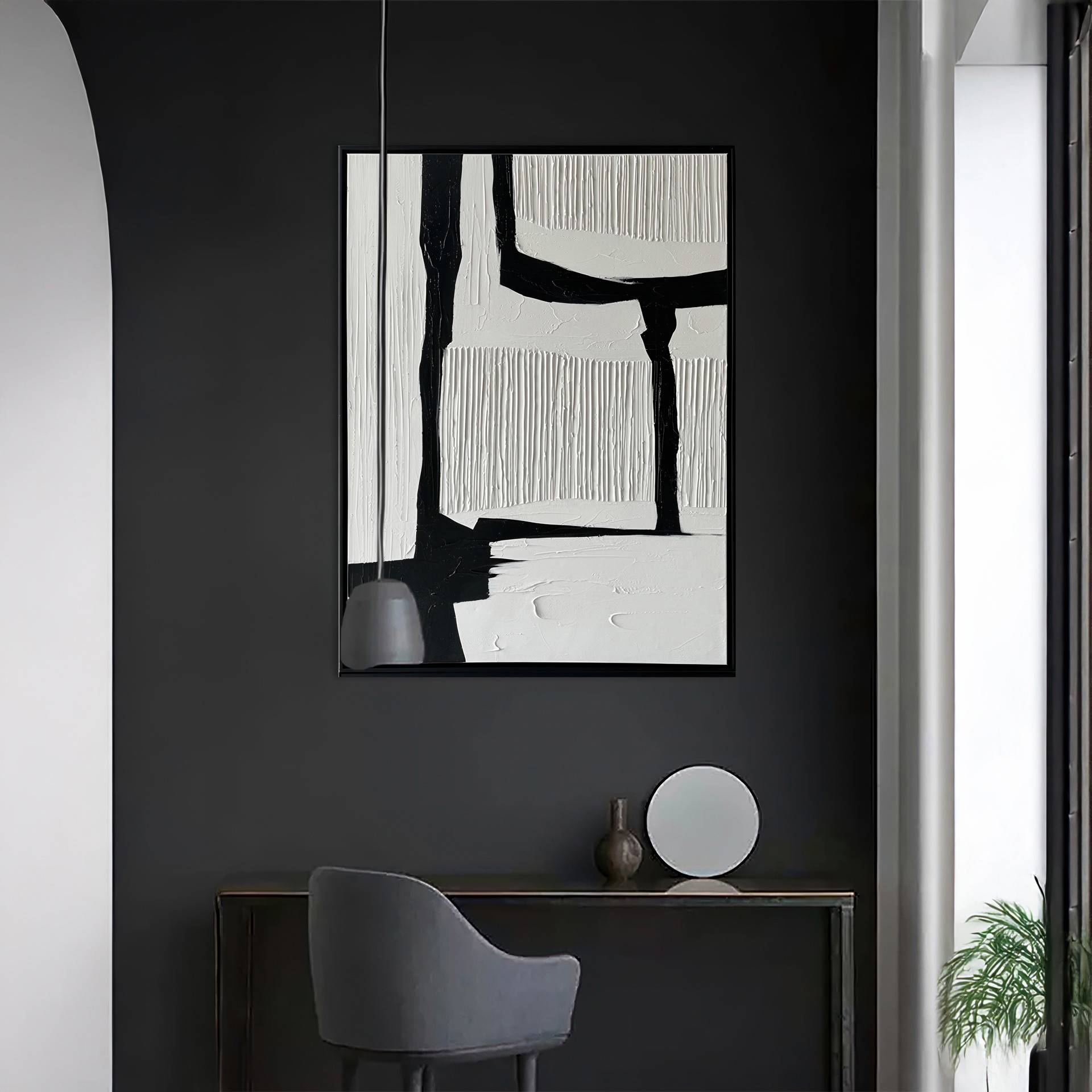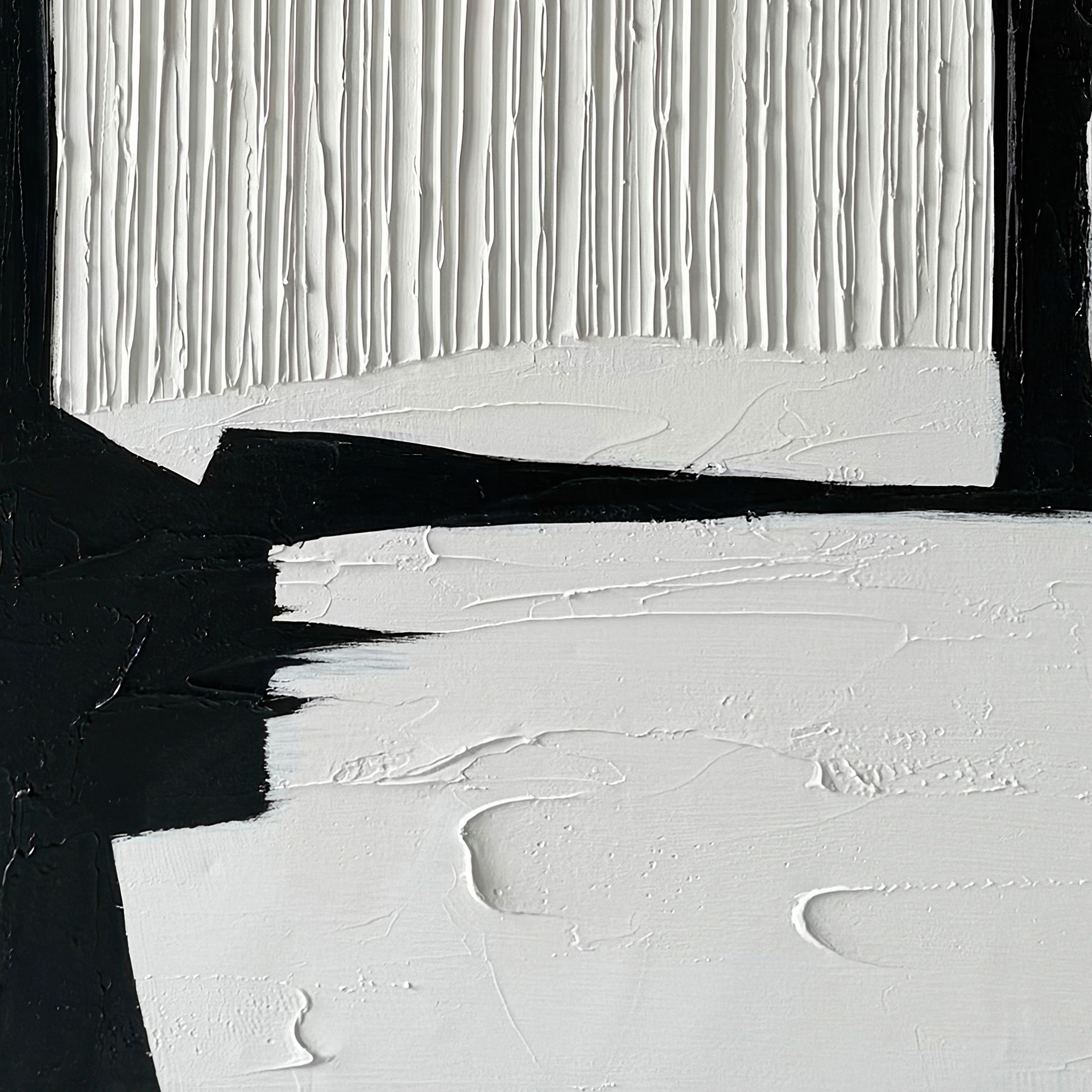 La peinture abstraite Nuance dans des tons de noir et blanc dans un cadre de 36 x 48 po rehaussera votre espace avec des oeuvres d´art murales 100% peintes à la main, alliant sophistication moderne et artisanat.